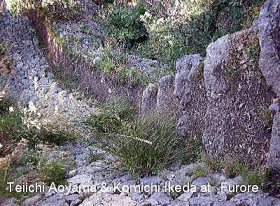 登山開始から3時間弱たったところで、やっとフローレのB&Bがある地域がみえてきました。下は石でつくられた階段道です。