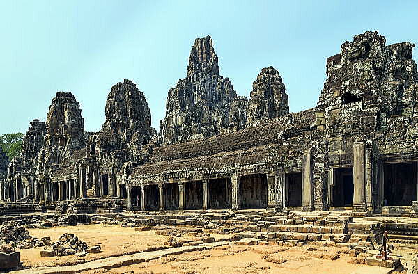 | アンコール遺跡全体目次 <アンコール・トム> アンコール・トム 南北門 東西門 王宮 ピミアナカス バイヨン1 バイヨン2 バイヨン3 バイヨン4 象のテラス1 象のテラス2 象のテラス3 ライ王のテラス1 ライ王のテラス2 ライ王のテラス3 プラサット・スゥル・プラット クリアン1 クリアン2 バプーオン1 バプーオン2 アンコール・トムの敷地は広大です。正方形の敷地一辺が3kmもあり、移動は自動車、トウクトウク、バイク、自転車で行います。アンコール・トムの敷地内は車が通れる道路があり、その道路を使います。 一般的な見学、視察コースは、南大門から入り、バイヨン、ピミアナカス、バープオン、象のテラス、ライ王のテラス、クリアンで最後に勝利の門となり勝利の門からアンコール・トムの外に出ます。 ◆アンコール・トム(Angkor Thom) 全体概要 アンコール・トムはカンボジアのシエムレアプ州にあるアンコール遺跡群の1つです。 名称は「大きな都」の意味をもっています。現存する遺構は 13世紀初頭にジャヤヴァルマン7世により第4次のアンコール王国の首都として造営されたものです。 周囲を1辺 3kmの城壁で正方形に囲み,合計5つの門をもっています。中央には世界の中心と見立てたバイヨンの仏塔がそびえ,その北側にはもともとは王宮がありました。 その後、王宮はバイヨンの西側に移っています。 13世紀末ここを訪れた中国,元朝の周達観の『真臘風土記』には,この都城の盛況が記されています。 参考:ブリタニカ国際大百科事典 ![]() アンコール遺跡・寺院地図 下の地図はアンコール・トム内部の伽藍配置を示しています。 ![]() アンコール・トムと5つの門の拡大図 ◆アンコール・トム全体概要2(Wikipedia) アンコール・トム (Angkor Thom) は、アンコール遺跡の重要なひとつで、アンコール・ワット寺院の北に位置する城砦都市の遺跡です。周囲の遺跡とともに世界遺産に登録されています。 「アンコール」は、サンスクリット語のナガラ(都市)からでた言葉。また「トム」は、クメール語で「大きい」という意味をもっています。 なお、アンコール・トムは王宮、バイヨンはじめ、5つの門、ライ王のテラス、象のテラス、ピミアナカス、パープオン、クリアン等の伽藍から構成されており、本稿ではアンコール・トムの全体概要とは別に、その順に沿って伽藍それぞれの解説します。 ![]() アンコール・トムのバイヨン Source:Wikimedia Commons 特徴 アンコール・トムの遺構にはヒンドゥー教と大乗仏教の混淆が見られますが、都市建築の基本はヒンドゥーの宇宙観を基に成り立った古代インドの建築理念の影響が見られます。 中央に世界の中心である山岳メール山を象徴するバイヨン (Bayon) 寺院があります。 その周囲にも象のテラスやライ王のテラス、プレア・ピトゥなどの遺跡も残っています。 アンコール・トムは約3キロメートル四方の京城であり、幅100メートルの堀と、ラテライトで作られた8メートルの高さの城壁で囲まれています。 外部とは南大門、北大門、西大門、死者の門、勝利の門の5つの城門でつながっています。各城門は塔になっていて、東西南北の四面に観世音菩薩の彫刻が施されています。また門から堀を結ぶ橋の欄干には乳海攪拌を模したナーガになっています。 ![]() アンコール・トムの南大門 Source:Wikimedia Commons またこのナーガ(蛇)を引っ張るアスラ(阿修羅)と神々の像があります。 京城の外の東西には、大洋を象徴するバライと呼ばれる巨大な人工の池があります。 ◆アンコール・トムの歴史 889年に即位したヤショヴァルマン1世は、現在の東バライとアンコール・トムの南半分を含む地域に王都ヤショダラプラを建設しました。 その後ヤショダラプラは一旦放棄されますが、944年に即位したラジェンドラヴァルマン2世は再びアンコールに遷都し、東バライの南にプレ・ループ寺院を建設しました。 1006年に即位したスーリヤヴァルマン1世は、現在のアンコール・トムとほぼ同じ位置に新王宮と護国寺院ピミアナカスを建て、西バライを建設しました。 12世紀後半、ジャヤーヴァルマン7世により現在のアンコール・トムが建設されたといわれています。 南北門につづく アンコール遺跡全体目次 |