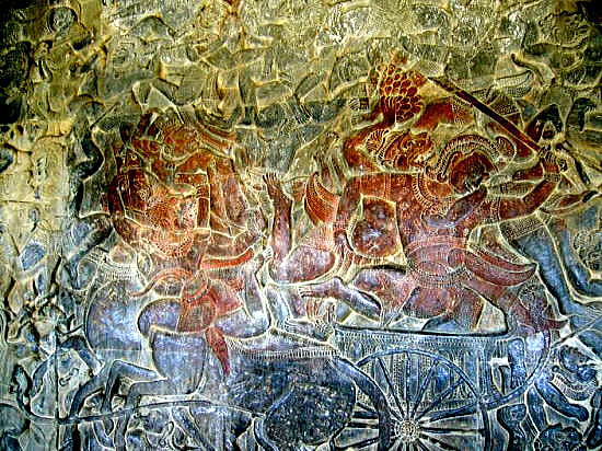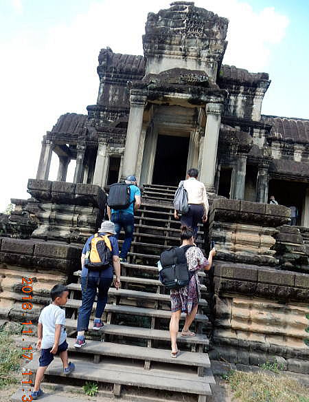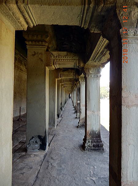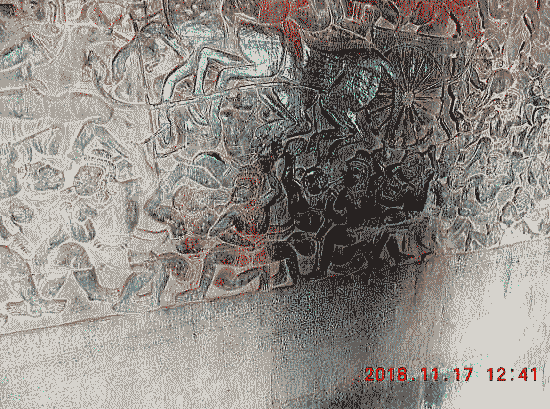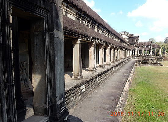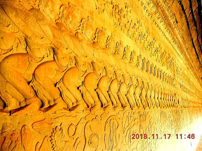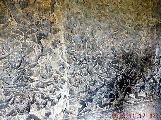 | アンコール遺跡全体目次 <アンコール・ワット> はじめに 東門 第1回廊 第2回廊 第3回廊、中央祠堂 十字回廊 千神経蔵 前庭 経蔵・西門 概要 歴史 修復活動 ◆第1回廊 ![]() 下の写真は東門から入りまっすく西側に進んでいったところにあるアンコール・ワットの第1回廊です。ここには壁に素晴らしい彫刻があります。 以下は第1回廊に向かう途中の写真です。 ![]() 撮影:随行学芸員 Nikon Coolpix S9900 以下は第1回廊に上る階段です。 ![]() 撮影:青山貞一 Nikon Coolpix S9900 2018-11-17 以下は外から見た第1回廊です。 ![]() 撮影:青山貞一 Nikon Coolpix S9900 2018-11-17 ![]() 撮影:池田こみち iPhone 下は、第1回廊の西面です。 ![]() 第1回廊西面 撮影:青山貞一 Nikon Coolpix S9900 2018-11-17 下は第1回廊の壁面です。この壁面には素晴らしい彫刻が施されています。 ![]() 撮影:池田こみち Nikon Coolpix S9900 2018-11-17 ![]() 撮影:随行学芸員 Nikon Coolpix S9900 ![]() 撮影:池田こみち Nikon Coolpix S9900 2018-11-17 第1回廊の西面に有名な彫刻があります。 ![]() 第1回廊西面の彫刻 Source: Wikimedia Commons パブリック・ドメイン, リンク 下は、第1回廊西面の彫刻を撮影したオリジナルと、デジタル処理後の彫刻です。 ![]() 第1回廊西面の彫刻 撮影:池田こみち Nikon Coolpix S9900 2018-11-17 ![]() 第1回廊西面の彫刻 撮影:池田こみち Nikon Coolpix S9900 2018-11-17 デジタル処理:青山貞一 ![]() 第1回廊西面の彫刻 撮影:青山貞一 Nikon Coolpix S9900 2018-11-17 ![]() 第1回廊西面の彫刻 撮影:青山貞一 Nikon Coolpix S9900 2018-11-17 ![]() 第1回廊西面の彫刻 撮影:青山貞一 Nikon Coolpix S9900 2018-11-17 ![]() 第1回廊柱の彫刻 撮影:池田こみち Nikon Coolpix S9900 2018-11-17 第一回廊では、柱に彫られたこまかい唐草模様とデヴァタの姿を見ることができます。また連子窓から漏れる光が非常に美しく、往時の雰囲気を醸し出しています。 注)連子窓とは(Wikiより) 連子窓(れんじまど)は、断面方形又は菱形の細長い木材(連子子)を縦又は横に連ねた連子を嵌め込んだ窓です。 採光、通風、防犯を目的としています。 寺院や神社で用いられることが多く、日本では法隆寺、薬師寺、春日大社、大極殿の回廊等に見られます。 ![]() 第1回廊の彫刻 撮影:青山貞一 Nikon Coolpix S9900 2018-11-17 ![]() 第1回廊の彫刻 撮影:青山貞一 Nikon Coolpix S9900 2018-11-17 ![]() 第1回廊の彫刻 撮影:青山貞一 Nikon Coolpix S9900 2018-11-17 <解説>第一回廊の壁面レリーフについて 参考 以下の資料を参考に第一回廊の壁面に彫られたレリーフについて説明を加えます。順番が私たちが実際に入った東側から北、西となっています。 h 第一回廊の壁面は多岐にわたっています。私たちが入った東側の面には、まず、乳海攪拌の詳細なレリーフが描かれています。途中、美しいデヴァタのレリーフを見ながら北に進むと、今度はヒンドゥー教の神であるヴィシュヌ神と阿修羅の戦いの図へと変わります。 角を曲がって北側の回廊に入ると、クリシュナーとバーナの戦いの図などが続き、白鳥に乗るブラフマーの先で西回廊に入る、西回廊北側には、ラーマーヤナの物語、西回廊南側には、マハーバーラタの物語が彫られています。 南回廊はゆっくり見る時間がなかったがアンコール・ワットを創建したスーリヤヴァルマン2世の軍隊や天国と地獄の様子を描いたレリーフで埋め尽くされているといいます。 第2回廊につづく アンコール遺跡全体目次 |