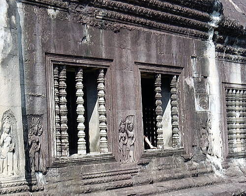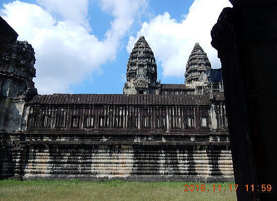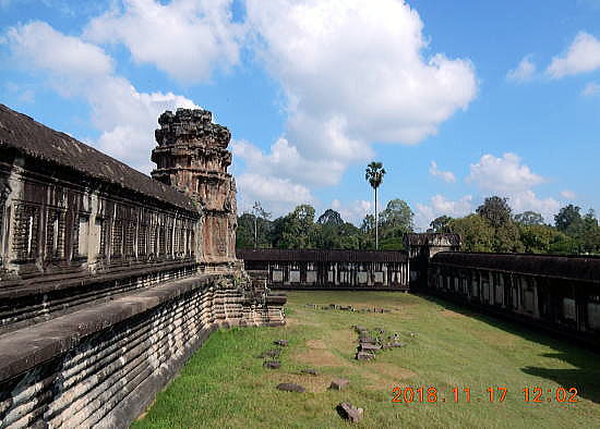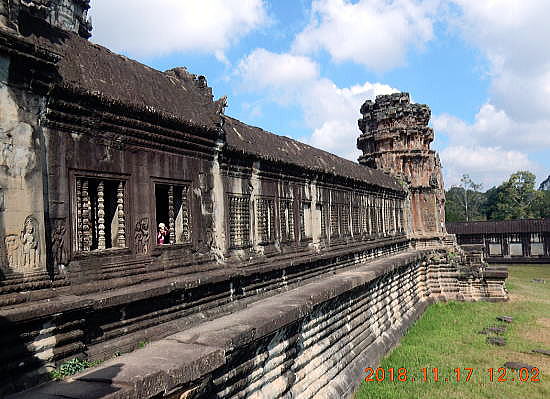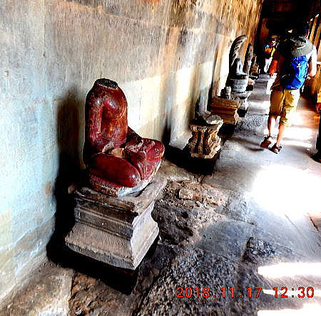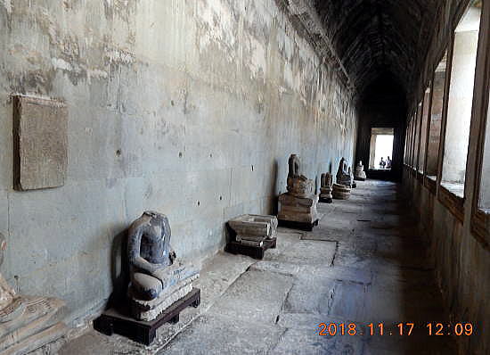 | アンコール遺跡全体目次 <アンコール・ワット> はじめに 東門 第1回廊 第2回廊 第3回廊、中央祠堂 十字回廊 千神経蔵 前庭 経蔵・西門 概要 歴史 修復活動 ◆第2回廊 ![]() アンコールワット平面全図 ![]() ![]() ![]() アンコールワット立体図 出典:グーグルアースより作成 正面に見えるのが第2回廊です。その後ろに祠堂の塔が見えます。 ![]() 撮影:池田こみち Nikon Coolpix S9900 2018-11-17 下の写真の左が第2回廊、下に見えます回廊が第1回廊です。 ![]() 撮影:池田こみち Nikon Coolpix S9900 2018-11-17 下の写真は第2回廊です。 ![]() 撮影:池田こみち Nikon Coolpix S9900 2018-11-17 第2回廊は東西115メートル、南北100メートル、中庭からの高さは7メートルとなっています。 東西の回廊は内壁に窓はなく、外壁には連子窓がしつらえられています。一方南北の回廊は其の逆となっており、外側が閉ざされた暗い空間となっています。 外側の壁面には多数のデヴァタが彫られているとのことですが、あまり見ることが出来ませんでした。 ![]() 撮影:池田こみち Nikon Coolpix S9900 2018-11-17 第2回廊には彫刻はなく、首のない仏像が並べられていました。 回廊内側におかれた仏像はいずれも頭部がなかったのですが、これは、ポルポト時代に破壊されたものとのことです。 ![]() 撮影:池田こみち Nikon Coolpix S9900 2018-11-17 ![]() 撮影:池田こみち Nikon Coolpix S9900 2018-11-17 ![]() 撮影:青山貞一 Nikon Coolpix S9900 2018-11-17 ![]() 撮影:青山貞一 Nikon Coolpix S9900 2018-11-17 ![]() 撮影:青山貞一 Nikon Coolpix S9900 2018-11-17 以下は、第2回廊と第3回廊の途中にあったアンコール・ワットのアプサラとデヴァタです。 参考 アプサラとデヴァタ ![]() 第2回廊と第3回廊の途中にあったアプサラとデヴァタ 出典:グーグルマップ・ストリートビュー ![]() 第2回廊と第3回廊の途中にあったアプサラとデヴァタ 出典:グーグルマップ・ストリートビュー 以下は上記のアプサラとデヴァタがあった場所の写真です。 ![]() 出典:グーグルマップ・ストリートビュー ![]() 出典:グーグルマップ・ストリートビュー ![]() 第2回廊と第3回廊の途中にあったデヴァタ 出典:グーグルマップ・ストリートビュー 第3回廊、中央祠堂につづく アンコール遺跡全体目次 |