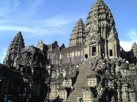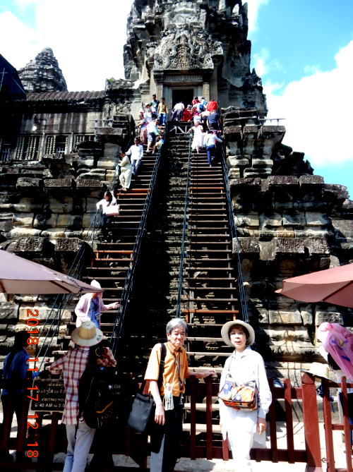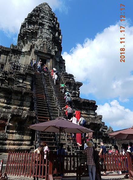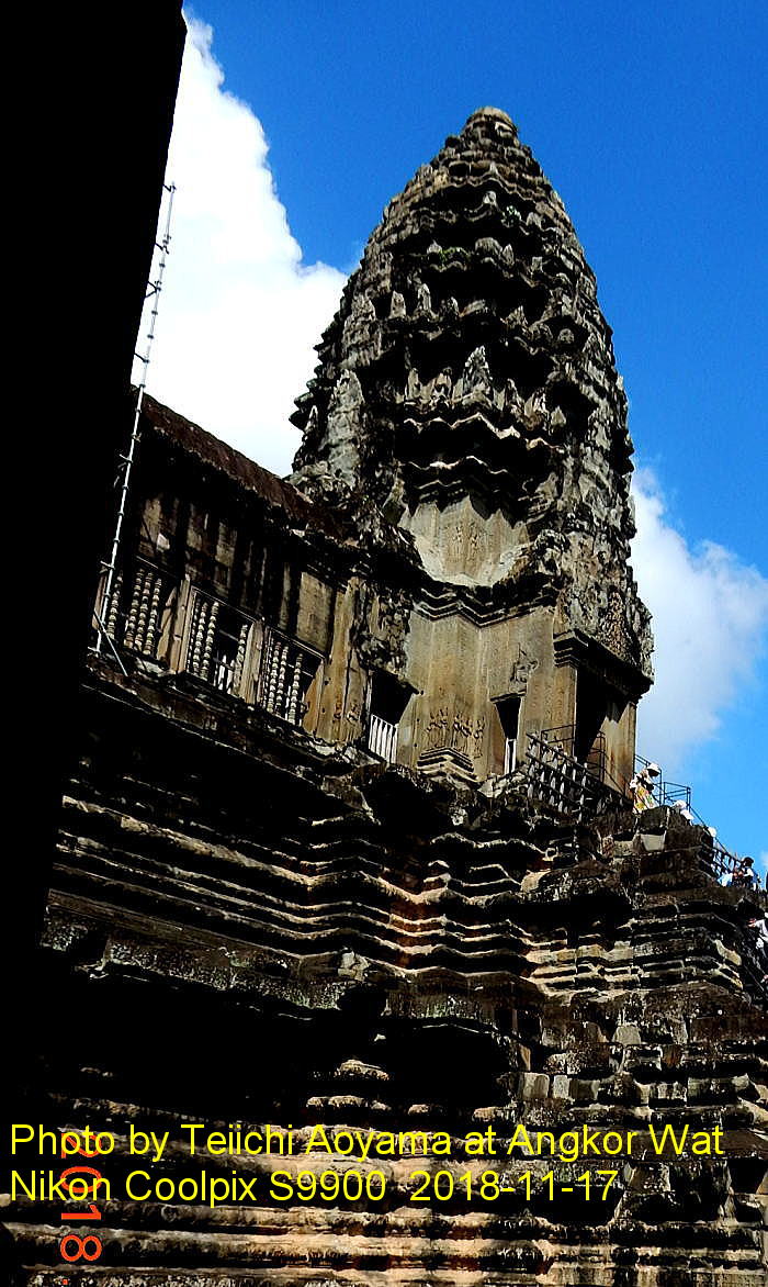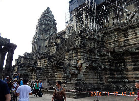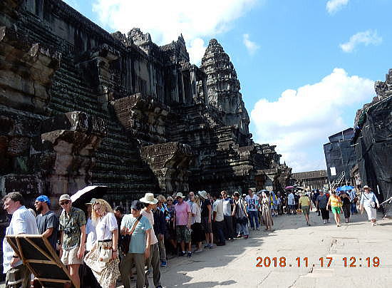 | アンコール遺跡全体目次 <アンコール・ワット> はじめに 東門 第1回廊 第2回廊 第3回廊、中央祠堂 十字回廊 千神経蔵 前庭 経蔵・西門 概要 歴史 修復活動 ◆第3回廊と中央祠堂 ![]() アンコール・ワット平面全図 ![]() アンコール・ワット第3回廊と中央祠の平面図 ![]() アンコール・ワット立体図 出典:グーグルアースより作成 この後、第3回廊に上りますが、第3回廊周辺は工事中です。 ![]() 撮影:池田こみち Nikon Coolpix S9900 2018-11-17 下が第3回廊に上る階段ですが、長蛇の列で1-2時間待たされます。 ![]() 第3回廊への階段 撮影:随行学芸員 Nikon Coolpix S9900 第三回廊から中央祠堂に上がるためには13メートルの急な石段を登る必要があります。中央祠堂上る階段は、東西南北にそれぞれ三つ、合計12個の石段がありますが、実際に使用できるのは一箇所のみで、手すりが付けられ上り下りを一方通行にしています。 中央祠堂は、四隅に設けられた塔に囲まれており、一辺が60メートルで各塔を結び、第三回廊となっています。それぞれの塔は古代インドの世界観の中でその中心にそびえる山、須弥山(しゅみせん)を模しており、最上部の高さは基底部から42メートル、道路からの高さは65メートルにも及びます。 第3回廊にも、石像や木彫りの仏像が安置されていますが、中央祠堂内部にも様々な仏像、涅槃仏などが安置されているようです。今回は時間の関係でじっくり視察できませんでしたので、次回にじっくり視察したいと思います。 ![]() 撮影:池田こみち Nikon Coolpix S9900 2018-11-17 下は第3回廊に上るための行列の近くで撮影した写真です。池田の両側にいる女性はイギリスから来られた観光客です。 ![]() 撮影:青山貞一 Nikon Coolpix S9900 2018-11-17 ![]() アンコール・ワット (トリップアドバイザー提供) ![]() 第3回廊から見た第2回廊 Source: Wikimedia Commons 下は第3回廊に上る長蛇の列です。入場制限、回廊での見学時間制限がある上に、この長蛇の列でした。 ![]() 撮影:池田こみち Nikon Coolpix S9900 2018-11-17 下は第3回廊と祠堂です。 ![]() アンコール・ワットの中央 祠堂(右)、祠堂(左2つ) Source:Wikipeida Commons ![]() アンコール・ワットの中央 祠堂 撮影:青山貞一 Nikon Coolpix S9900 2018-11-17 ![]() 中央祠堂 出典:グーグルマップ・ストリートビュー ![]() アンコール・ワットの中央 祠堂 撮影:池田こみち Nikon Coolpix S9900 2018-11-17 ![]() アンコール・ワットの祠堂 撮影:青山貞一 Nikon Coolpix S9900 2018-11-17 ![]() アンコール・ワットの 祠堂 撮影:池田こみち Nikon Coolpix S9900 2018-11-17 ![]() アンコール・ワット (トリップアドバイザー提供) ![]() アンコール・ワット (トリップアドバイザー提供) ![]() 第3回廊の女神 Source: Wikimedia Commons パブリック・ドメイン, リンク 以下はトリップアドバイザー提供の中央祠堂の写真です。 ![]() アンコール・ワット (トリップアドバイザー提供) ![]() アンコール・ワット (トリップアドバイザー提供) ![]() アンコール・ワット第3回廊と中央祠の平面図 ![]() 第3回廊と中央祠堂 出典:グーグルマップ・ストリートビュー ![]() 第3回廊と中央祠堂 出典:グーグルマップ・ストリートビュー ![]() 第三回廊にあった首のない仏像 出典:グーグルマップ・ストリートビュー ![]() 第三回廊にあった仏像 出典:グーグルマップ・ストリートビュー ![]() アンコール・ワット (トリップアドバイザー提供) ![]() 第三回廊 出典:グーグルマップ・ストリートビュー ![]() 第三回廊 出典:グーグルマップ・ストリートビュー 十字回廊 につづく アンコール遺跡全体目次 |