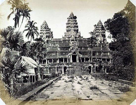さらに1860年、寺院を訪れたフランス人のアンリ・ムーオの紹介によって西欧と世界に広く知らされるようになります。 下の絵は1866年にアンコールっワットの中央祠堂を撮影した写真です。 ![]() 中央祠堂(1866年撮影) Source: Wikimedia Commons 1887年、カンボジアが仏領インドシナとされ、1907年にシャムからアンコール付近の領土を奪回すると、フランス極東学院が寺院の保存修復を行いました。 ※フランス極東学院は、多くのアンコール遺跡の修復に係わって いることが、本稿のアンコール遺跡の各論における技術から分かります。 太平洋戦争下の1942年から1943年にかけて、日本の真宗大谷派が派遣した東本願寺南方美術調査隊が現地を訪れ、写真などを残しています。 1972年、カンボジア内戦によって極東学院はカンボジアを離れ、寺院はクメール・ルージュによって破壊されました。この時に多くの奉納仏は首を撥ねられ砕かれ、敷石にされたといいます。 1979年にクメール・ルージュが政権を追われると、彼らはこの地に落ち延びて来ました。アンコール・ワットは純粋に宗教施設でありながら、その造りは城郭と言ってよく、陣地を置くには最適だったのです。 周囲を堀と城壁に囲まれ、中央には楼閣があって周りを見下ろすことが出来ます。また、カンボジアにとって最大の文化遺産であることから、攻める側も重火器を使用するのはためらわれたのです。当時置かれた砲台の跡が最近まで確認できました(現在は修復されています)。 だがこれが、遺跡自身には災いしました。クメール・ルージュは共産主義勢力であり、祠堂の各所に置かれた仏像がさらなる破壊を受けたのです。内戦で受けた弾痕も、修復されつつありますが一部にはまだ残っています。 内戦が収まりつつある1992年にはアンコール遺跡として世界遺産に登録され、1993年にはこの寺院の祠堂を描いたカンボジア国旗が制定されました。 ![]() カンボジア国旗 Source: Wikimedia Commons 今はカンボジアの安定に伴い、各国が協力して修復を行っており、周辺に遺された地雷の撤去も進んでいます。世界各国から参拝客と観光客を多く集め、また仏教僧侶が祈りを捧げています。 参道の石組みの修復は日本人の石工が指導しており、その様子はNHK『プロジェクトX』で取り上げられました。 修復活動につづく アンコール遺跡全体目次 |