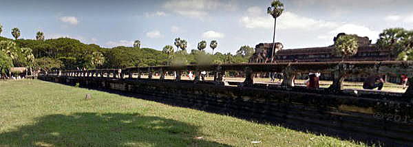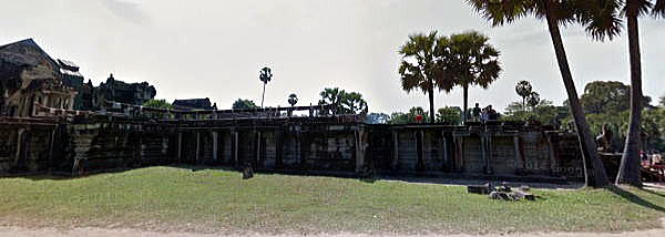 | アンコール遺跡全体目次 <アンコール・ワット> はじめに 東門 第1回廊 第2回廊 第3回廊、中央祠堂 十字回廊 千神経蔵 前庭 経蔵・西門 概要 歴史 修復活動 ◆前庭 ![]() 十字回廊を過ぎると、地上より少し高いところに、西門に向かってテラスが伸びています。 下の写真はテラスの上で、西門側を撮影した写真です。 ![]() 撮影:青山貞一 Nikon Coolpix S9900 2018-11-17 一方、下の写真はテラスの上で・アンコール・ワットの祠堂側を撮影したものです。 ![]() 撮影:青山貞一 Nikon Coolpix S9900 2018-11-17 ![]() 撮影:青山貞一 iPhone ![]() 撮影:池田こみち iPhone 下はテラスを横から見た写真です。テラスは東西、南北それぞれの方向に延びています。下はグーグルマップ・ストリートビューで見たテラスの写真です。 観光客が多いときは、このテラスの上が観光客でいっぱいになるそうです。 ![]() 出典:グーグルマップ・ストリートビュー ![]() 出典:グーグルマップ・ストリートビュー ![]() 出典:グーグルマップ・ストリートビュー ![]() 出典:グーグルマップ・ストリートビュー テラスを降りると、アンコール・ワットの広大な前庭がひろがります。 前庭の北側には、以下の聖池があります。ここからはアンコール・ワットの全体がよく見え、聖池を含めた絶好のビューポイントとなっています。 ![]() 聖池と堂宇 Source: Wikimedia Commons CC BY-SA 3.0, Lien 観光案内などでよく見かける以下の写真は、この位置から撮影したものです。 ![]() Source: Wikmedia Commons CC 表示-継承 4.0, リンクによる ![]() 聖池の水面に映る堂宇 Source: Wikimedia Commons ![]() 撮影:随行学芸員 Nikon Coolpix S9900 2018-11-17 ![]() 撮影:随行学芸員 Nikon Coolpix S9900 2018-11-17 なお、前庭などには猿が来くることもあるそうです。 ![]() アンコール・ワットの周辺の森には多くの猿が生息しています。 Source: Wikimedia Commons ![]() アカゲザルがアンコール・ワットの敷地内で草を食べています。 Source: Wikimedia Commons 経蔵・西門につづく アンコール遺跡全体目次 |