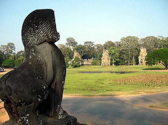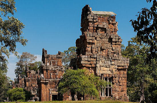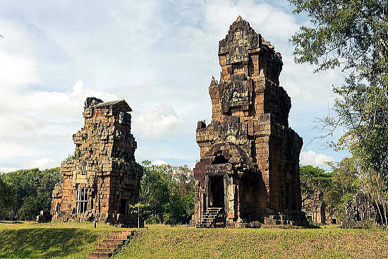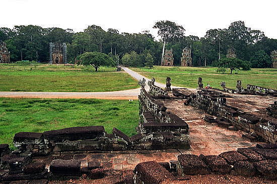 | アンコール遺跡全体目次 <アンコール・トム> アンコール・トム 南北門 東西門 王宮 ピミアナカス バイヨン1 バイヨン2 バイヨン3 バイヨン4 象のテラス1 象のテラス2 象のテラス3 ライ王のテラス1 ライ王のテラス2 ライ王のテラス3 プラサット・スゥル・プラット クリアン1 クリアン2 バプーオン1 バプーオン2 ◆プラサット・スゥル・プラット(Prasat Suor Prat) プラサット・スゥル・プラット(Prasat Suor Prat)は、カンボジアのシェムリアップ近郊に位置するアンコール遺跡群のうち、アンコール・トムにある象のテラスの前方に連なる12基の塔です。 王宮から勝利の門へと続く王道の前面にあり、12世紀末に、ジャヤーヴァルマン7世(在位1181-1220年)によって建造されたバイヨン様式の塔群であるとされますが、正確な年代は不明です。 「綱渡りの塔」(Towers of Cord Dancers)とも呼ばれ、それは祭典の際に、綱渡りをテラスにいる王に見せたという伝説によるが、これらの塔の目的についても諸説あります。 ![]() アンコール遺跡・寺院地図 ![]() プラサット・スゥル・プラット(Prasat Suor Prat) Source:Wikimedia Commons ![]() カンボジア、アンコールにあるアンコール・トムの中心部に位置する像のテラス の前に並ぶプラサット・スゥル・プラット Source:Wikimedia Commons ◆プラサット・スゥル・プラットの構成 12基の塔は王宮前広場の東側に南北にわたって配置されており、東の勝利の門に向かって続く道路の両側(南・北)にそれぞれ6基ずつ連なります。 道路のすぐ両脇の2基はほかの塔より東に後退した位置にあり、それぞれ道路側を正面とします。その2基を除いた南・北の各5基は広場側(西)が正面となります。また発掘により、これらの連なる塔群の西側のテラスが知られています。 これらの塔の呼称は、フランス極東学院 (EFEO) では北から順に No. 1、No. 2 としていましたが、日本国政府アンコール遺跡救済チーム (JSA) は、道路を基軸に、北群( Northern Group)の塔を北に向かって順に、N1、N2、N3、N4、N5、N6塔とし、同様に、南群(Southern Group)も道路側から順に、S1、S2、S3、S4、S5、S6塔としています。 N1-N3塔およびS1-S3塔の各背面にそれぞれ長方形の沐浴池(英: North Pond〈Srah Andong〉・ South Pond〈Srah Taset〉)があり、また、N4-N5塔とS4-S5塔の背面にはそれぞれ北クリアン・南クリアンがあります。 ![]() ![]() 塔の外観 Source:Wikimedia Commons ![]() カンボジア、シェムリアップ、アンコール・トム域内にあるプラサット・スゥル・プラット Source:Wikimedia Commons 塔は上下の基壇とその上の基座とともにラテライトで築かれ、開口部枠や破風(ペディメント)などの装飾部には砂岩が使用されています。 塔はすべて主塔1室構成で、正面入口に前室を備える方形の3層構造であるが、各層を隔てるような床面はなく、第1層の上部にのみ木製の天井が架けられたと考えられます。塔本体の両側および背面の3壁面に窓が大きく設けられ、前室の左右にも備えられたそれらは連子窓(れんじまど)でありました。 ![]() Dau truong 12 con giap Source:Wikimedia Commons クリアン1につづく アンコール遺跡全体目次 |
