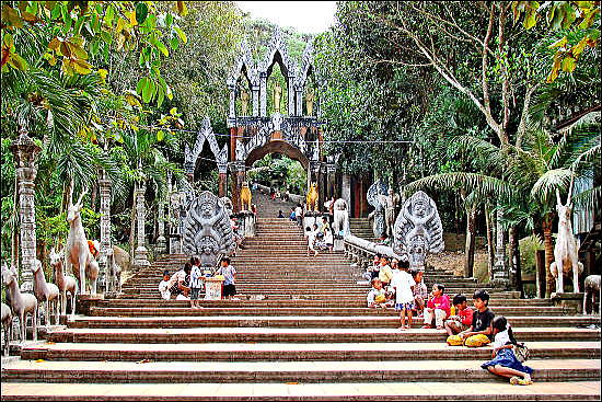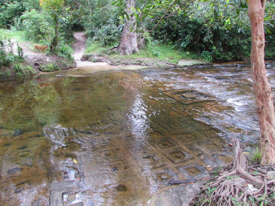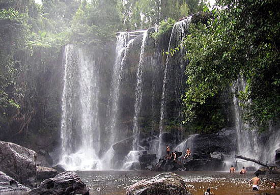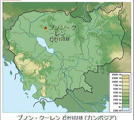 | アンコール遺跡全体目次 <北東部郊外の寺院・遺跡> バンテアイ・スレイ1 バンテアイ・スレイ2 バンテアイ・スレイ3 バンテアイ・スレイ4 バンテアイ・スレイ5 プノン・クーレン クバール・スピアン1 クバール・スピアン2 クバール・スピアン3 べンメリア1 べンメリア2 ベンメリア3 ベンメリア4 コーケル1 コーケル2 コーケル3 コーケル4 コーケル5 ◆プノン・クーレン(Phnom Kulen) プノンクレーン(Phnom Kulen)は、アンコール発祥の地と言われて聖なる山です。シェムリアップから北へ約50kmのところにクレーン山の麓があり、その後約30分ほど登ったところの山頂に、滝やプレアアントン涅槃像、千本リンガの遺跡があります。 現在でも信仰の場になっており、カンボジア全土から多くの人が訪れています。通常の観光客が入らない山中には50を超える寺院や彫像などの遺跡があると言われていますが、地雷が残っている確率があり、現地ガイドの同行がなければ危険です。また、観光には時間制限があり、正午を過ぎると車での入山は出来なくなります。 ![]() アンコール遺跡・寺院地図 プノン・クーレン(クーレン山、 Koulen Mountain、「ライチの山」の意)は、カンボジアのシェムリアップ州に位置する山岳地帯す。 ![]() Phnom Kulen, Cambodia souece:Wikimedia Commons ![]() プノン・クーレン の位置 地勢 プノン・クーレンは、丘というよりはむしろダンレク山地の南に横たわる穏やかな高さの小山の台地が独立した小山脈です。シェムリアップの北東約40キロメートルに位置し、その範囲は北西-南東(西北西-東南東)約30キロメートルにおよんでいます。 その最頂地点は487メートルである[3]。プノン・クーレンの標高は比較的一定で、連なりのすべてにわたって平均およそ400メートルであるが[1]、南東側に向けてやや高い[2]。 地質学的にプノン・クーレンは砂岩で形成される。アンコール時代の採石場として重要であり、その主要な採石場が、山塊の東南方向に位置していた[4]。 プノン・クーレンの大滝 ![]() プノン・クーレンの大滝 Source:Wikimedia Commons チュ・プリア (Chup Preah) が、小川として山の渓谷に流れ込んでいる。プノン・クーレンには主となる2つの滝がある。第1の滝は高さ4-5メートル、幅20-25メートル。第2の滝は高さ15-20メートル、幅10-15メートルであり、これらの値は乾季および雨季による。 保護区 詳細は「プノン・クーレン国立公園」を参照 プノン・クーレン国立公園の地域保護区が、スヴァイ・レン (Svay Len) とヴァ・リン (Va Rin) の区域にまたがってある。その目的は、いくつかの素晴らしい滝のような、プノン・クーレンの山の自然的景観の要素を保全するための科学および活動です。 プノン・クーレンは、アンコール・ワットの北東30キロメートルに位置し、その名は「ライチの山」("Mountain of the Lychees")を意味する。この連なる山上に聖なる高丘の地があります。 プノン・クーレンは、カンボジアにおいて聖なる山と見なされ、巡礼に山を訪ねるヒンドゥー教徒や仏教徒にとって特別な宗教的意義があります。またそこは王ジャヤーヴァルマン2世が、西暦紀元802年にジャワからの独立を宣言した場所がプノン・クーレンであったことから、古代クメール王朝の発祥の地として、カンボジア人に対して大きな象徴的重要性を持っています。 プノン・クーレンの1,000本リンガ ![]() プノン・クーレンの1,000本リンガ Source:Wikimedia Commons ジャヤーヴァルマン2世は、802年より王の崇拝、リンガ礼拝を起こし、かつクメールが従属状態であったジャワからの独立を宣言した(これが実際の「ジャワ (Java)」、もしくは「ラヴァ (Lava)」〈ラオスの王国〉)であったかは議論があります)。プノン・クーレンは、アンコール時代の碑文より、マヘンドラパルヴァタ(大インドラの山)として知られています。 一帯は、その豊沃を象徴する彫刻と、ヒンドゥー教徒にとって特別な意味を持つその水域で知られています。1,000余の小彫刻が、水面下わずか5センチメートルの砂岩の川床に刻み込まれています。 その水域は、ジャヤーヴァルマン2世が川で水浴するために選ばれたとされ、神聖視されています。また、そこは石の床に彫刻できるように迂回させる川がありました。彫刻には、ヒンドゥー教の神ヴィシュヌが、彼のヘビであるアナンタ(シェーシャ)の上に横たわり、彼の足元には妻ラクシュミーがいる石の描出やハスの花が、神ブラフマーのへその位置から伸び出しているものなどがあります。川はやがて滝と滝壺に終わります。 プリア・アン・トムへの参道 ![]() プリア・アン・トムへの参道 Source:Wikimedia Commons 近くには16世紀の磨崖仏寺院プリア・アン・トム (Preah Ang Thom) があり、巨岩の上に彫られた全長8メートルとなる[2]国内最大の巨大な涅槃仏は注目に値します。 サムレ (Samre) 族が、かつて砂岩を採石するプノン・クーレンの端に住み、国王の都にそれを輸送しました。また、クメール・ルージュは、彼らの政権が1979年より最後を迎えるまで、最終的な砦