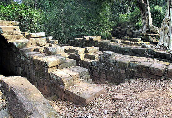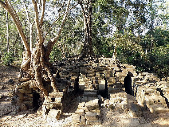 | アンコール遺跡全体目次 <東部の寺院・遺跡1> スピアン・トマ タ・ケウ1 タ・ケウ2 バンテアイ・サムレ1 バンテアイ・サムレ2 タ・プローム1 タ・プローム2 スラ・スラン バンテアイ・クデイ1 バンテアイ・クデイ2 バンテアイ・クデイ3 ◆スピアン・トマ(Spean Thma) スピアン・トマ(Spean Thma)は、カンボジアのアンコール地域にある「石の橋」(スピアンは「橋」で、トマは「石」の意)として知られています。 現在に残るいくつかのクメール王朝時代の橋のひとつであり、タ・ケウの西に位置します。 ![]() アンコール遺跡・寺院地図 スピアン・トマ(Spean Thma)は、トマノンの南東、タ・ケウの北西のシェムリアプ川にかかる橋です。 ![]() 出典:グーグルマップ ![]() スピアン・トマ−シェムリアップにあるアンコール時代以降の橋−カンボジア Source:Wikimedia Commons アンコール・トムと東バライの間にあるシェムリアップ川の手前の小道に造られ、多くの再利用された砂岩のブロックを含んでいることから、おそらくはクメール時代(15世紀頃)の後、16世紀中頃に再建されたものではないかと推察されています。 現在に残る14の狭いアーチ(迫り出し構造の隙間)は、幅1.6メートル。樹の根が張った橋の中央部分が崩壊せずに残存します。 同じ構造の橋は、他にもアンコール地域のスピアン・メーマイ (Spean Memai) や、前王国のいくつかの場所で見られます。アンコールから南東に向かう道にあるスピアン・プラプトス (Spean Praptos) は、 25のアーチをもつ最も長い石橋の1つです。 ![]() スピアン・トマ−シェムリアップにあるアンコール時代以降の橋−カンボジア Source:Wikimedia Commons ![]() 出典:グーグルマップ・ストリートビュー ![]() 出典:Malte Scholz、グーグルマップ・ストリートビュー ![]() これは、その昔はシェムリアップ川にかかる橋で、象がアンコールで寺院を 建造するための石材を運んで通った。カンボジア、シェムリアップ、2006年12月 Source:Wikimedia Commons タ・ケウ1につづく アンコール遺跡全体目次 |