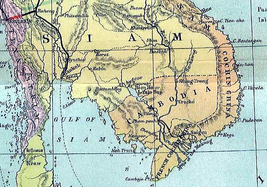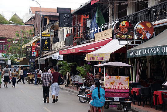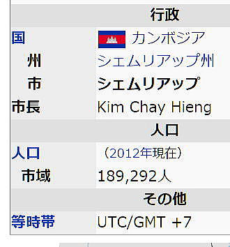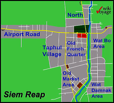 | アンコール遺跡全体目次 東南アジア巨大石造遺跡に魅せられて シエムリアップに行く1 シエムリアップに行く2 視察・見学の方法と注意 遺跡・寺院の概要・場所 <参考> カンボジア基礎知識 シェムリアップ基礎知識 博物館 クメール王朝について 創建順による遺跡・寺院 アンコール関連用語解説 クメール建築様式 アプサラとデヴァタ カンボジアの伝統工芸 ![]() シェムリアップ(Siem Reap)はカンボジア北西部のシェムリアップ州の州都です。 2012年の人口は18万9292人で、同国5位となっています。 アンコール・ワット、アンコール・トムなどを含むアンコール遺跡群の観光拠点となっていいます。 日本ではシエムレアプとも表記されます。 歴史 ![]() 1886年のカンボジア。シェムリアップ周辺はシャムの統治下に 置かれていました。 Source:Wikimedia Commons シェムリアップ一帯は、何世紀もの間、シャム(現在のタイ王国)の領土かその王権の属国でした。Siem Reap は直訳すれば「シャム人敗戦の地」ですが、これは17世紀にクメール人がシャムのアユタヤ王朝の軍隊に勝利したことに因んでいます。 帝国主義時代にフランスは東南アジアの広大な領域を植民地化しました。カンボジアのほかにラオスもベトナムもこの「フランス領インドシナ」に属しました。1907年3月25日の条約で、シェムリアップ、バッタンバン及びシソポン(合計で 20,000 平方キロメートル以上)も植民地政府に属しました。 太平洋戦争中はタイ・フランス領インドシナ紛争と、それを終結させた東京条約により、一時期タイの領土となりましたが、戦後はフランス領に復帰しました。しかし1949年から1953年にかけカンボジア王国が成立すると、その領域となりました。 1975年から始まったクメール・ルージュ支配の時代には、全国の他の都市から誘拐されてシェムリアップの住民にさせられた人々が、畑での重労働に従事させられていました。 これらの人々は、1979年1月にベトナム軍が侵攻してクメール・ルージュに勝利した後、故郷の都市に帰されましたが、クメール・ルージュは1990年代の初めまで森に逃げ込んで攻撃を続けました。住民は、長年の間、バリケードを築いて中心街を守らなければならなりませんでした。シェムリアップやUNTAC平和維持部隊に対する最後の攻撃は1993年に起こりました。 政府が外国人観光客の入国を認めるようになると、多くの観光客がシェムリアップをアンコール遺跡群への拠点として利用したため、安定した収入源が加わりました。こうして、20世紀の初頭に建てられたホテルが次々に再び営業を始めました。 2000年代に入っても、シェムリアップは観光の拠点都市として発展し続けており、様々な種類のレストランに加えて、五つ星高級ホテルから5米ドルの安宿まで、あらゆる価格帯のホテルやゲストハウスが営業しています。 シェムリアップは現在プノンペンと同様に建設ラッシュの状態にあり、国立の巨大な博物館やコンサートホール(地元の小児は無料)、観光客向けの病院なども建設されています。 地理 ![]() シェムリアップ市街図 Source:Wikimedia Commons CC 表示-継承 3.0, リンクによる 東南アジア最大の湖であり、世界でも有数の多様な魚類が生息するトンレサップ湖の約10キロメートル北東にあり、アンコール・ワットの6キロメートル南です。 シェムリアップ川の両岸に広がる市街地には60,000人の住民がいます。カンボジアの他の多くの町と同じく、いくつものWat(寺院と僧坊)の周りに発展した村がひとまとまりになって発展してできた町です。 町の中心にはオールド・マーケットがあり、その周りをフランス植民地風の民家が取り囲んでいます。 気候 以下は毎月の平均気温、降水量のです。私たちは11月にでかけましたが、平均混んで30.6度ありました。11月の降水量は他の月に比べればかなり低いのですが、湿度も高く、いわゆる不快指数は非常に高いと感じました。 ![]() ![]() Source:Wikimedia Commons 経済 ![]() 観光客で賑わうパブストリート Source:Wikimedia Commons CC 表示-継承 3.0, リンクによる トンレサップ湖周辺では、伝統的に、住民は水田での米作と漁業を生活の基盤とし、最も重要な収入源にしてきました。クメール・ルージュはアンコール遺跡群周辺を最後の拠点として抵抗を続けたが、相次ぐ投降を受けてポル・ポトがソン・センを処刑し、ついでポル・ポトが死亡すると、本格的な地雷撤去作業が始められ、シェムリアップは観光都市としての復活を始めました。 1990年代に一連のプロセスが進行し、カンボジア国内の政治情勢も安定して、シェムリアップも平和で国内でも比較的に繁栄するようになりました(とはいえ、カンボジアは最貧国の一つであり、平均月収は約30米ドルにすぎない)。シェムリアップの繁栄は観光業に負うところが大きいと言えます。 市街中心部には日本のNGOが設立した小児病院があり、北東部にも、ジャヤヴァルマン7世小児科病院があります。同院は、スイスの医師ビート・リヒナーがスイスとフランスを