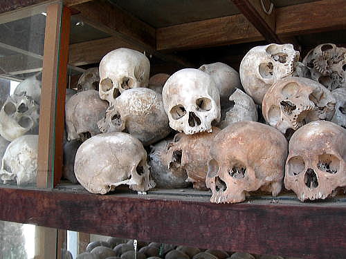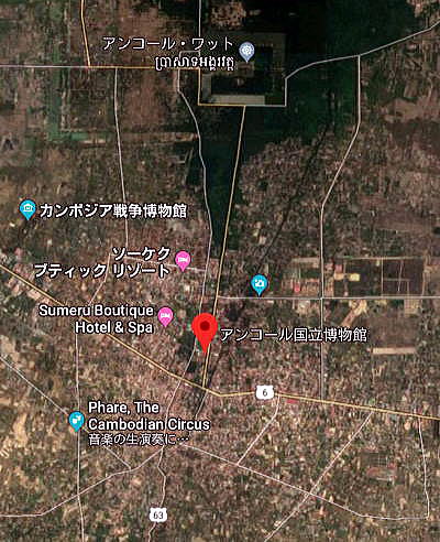 | アンコール遺跡全体目次 東南アジア巨大石造遺跡に魅せられて シエムリアップに行く1 シエムリアップに行く2 視察・見学の方法と注意 遺跡・寺院の概要・場所 <参考> カンボジア基礎知識 シェムリアップ基礎知識 博物館 クメール王朝について 創建順による遺跡・寺院 アンコール関連用語解説 クメール建築様式 アプサラとデヴァタ ◆アンコール国立博物館 ![]() 出典:グーグルマップ アンコール国立博物館は、シェムリアップ市内中心部にある博物館です。街中からアンコール・ワットに行く途中に位置しています。冷房設備が整った博物館で、暑い時間帯でも涼しく見学して過ごすことが出来ます。 博物館の中は、年代やテーマによって8つのギャラリーに分かれて展示されています。アンコール遺跡から出土した像やレリーフの展示はもちろん、映像での説明などにより、古くからの歴史や信仰などをわかりやすく説明しています。 ![]() アンコール国立博物館 (トリップアドバイザー提供) ![]() アンコール国立博物館 (トリップアドバイザー提供) ![]() アンコール国立博物館 (トリップアドバイザー提供) ![]() アンコール国立博物館 (トリップアドバイザー提供) 歴史 アンコール国立博物館は、2007年に完成しました。アンコール遺跡から出土した彫刻やレリーフなど5000点以上を保管していると言われ、その一部を展示しています。 博物館の入場料は現在12 US$です。3US$で日本語のイヤホンガイドを借りることもできます。 特徴 アンコール国立博物館の8つのギャラリーなかで1000体の仏像を展示しており特に独創的です。このギャラリーでは1000体の仏像を展示することで、古代のクメール文明の時代から現代までの仏教の思想の精神的なつながりを表しています。 ◆カンボジア戦争博物館 カンボジア軍務省が運営する屋外博物館でありカンボジア内戦時代に使用されていた戦車や爆弾、銃などが展示されている博物館です。地雷による被害や現状を展示しているブースもあります。 カンボジア戦争博物館ではインドシナ戦争や内戦などで実際に使用された武器が、マンゴーの木が茂るガーデンに展示されています。また戦車、バズーカ砲(対戦車用ロケット砲)、機関銃、大砲、地雷、手榴弾などを見ることができます。 スポット情報 時間 8:00-17:00 電話番号 012-873666 料金 5$ 場所 空港の近く ◆ワット・トメイ寺院 (キリングフィールド) カンボジアで大量虐殺が行われた所であり、膨大な数の一般人がいきなり連行され、虐殺されて穴に埋められています。博物館の名前、「キリング・フィールド(The Killing Fields)」は、まさに刑場の跡なのです。 「キリング・フィールド(The Killing Fields)」には実際に処刑された人々の遺骨が展示されています。 キリング・フィールド( Killing Fields)は、ポル・ポト政権下のカンボジアで、大量虐殺が行われた刑場跡の俗称です。 クメール・ルージュの秘密警察であるサンテバルは、知識人・伝統文化継承者・教師・宗教関係者などを反革命的な者と見なして次々と殺害しました。後には、クメール・ルージュの地方機関や事業所の幹部までもが反乱の恐れ有りとして殺害されて行きました。 これら多数のカンボジア人が殺害された刑場が、現在のカンボジア各地で「キリング・フィールド」と呼ばれている場所です。最も有名な物は、首都プノンペンにあった政治犯収容所S21(トゥール・スレン)に付属する刑場として造られた、チュンエクのキリングフィールド(以下の写真)があります。 ![]() 「キリング・フィールド(The Killing Fields)」 出典:グーグルマップ・ストリートビュー ![]() 「キリング・フィールド(The Killing Fields)」 出典:グーグルマップ・ストリートビュー ![]() 発見された人骨。骨端が閉じていないため10代前半の少年少女たち です。処刑した看守の多くもそれと同年代であったと言います。 Source:Wikimedia Commons CC BY-SA 2.5, Link ![]() クメール・ルージュ犠牲者 Source:Wikimedia Commons Public Domain, Link