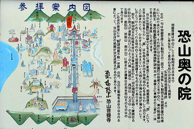 恐山だが、伝承によれば、その開山は貞観4年(862年)という。貞観と言えば、貞観津波が有名だが何と1153年も前となる。 霊山の開祖は天台宗を開いた最澄の弟子である円仁(慈覚大師)であるという。 文化7年(1810年)再刊の『奥州南部宇曽利山釜臥山菩提寺地蔵大士略縁起』によれば、円仁が唐留学中に 「汝、国に帰り、東方行程30余日の所に至れば霊山あり 地蔵大士一体を刻しその地に仏道を広めよ」という夢告をうけたという。 円仁はすぐに帰国後、夢で告げられた霊山を探し歩いた末、下北半島の 恐山にたどり着いたといわれれている。 霊山の恐山には地獄をあらわすものが108もある。108と言えば除夜の鐘の数と同じだ。 108のすべてが夢と符合するので、円仁は6尺3寸の地蔵大士(地蔵菩薩)を彫り、 本尊として安置したとされている。 宇曽利湖は静穏で、ほとんど波も無く、なかなかすばらしい自然景観だ。