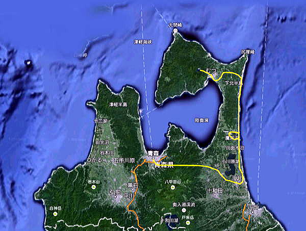 ![]() 下図は 青森県内にある主な風力発電ファームである。青森県内にには約200基の風力発電施設があるとのことだが、今回の現地視察では、そのうち「おいらせ町」、「深浦町」以外の風力発電ファームのすべてを視察することが出来た。 ![]() 青森県内にある主な風力発電設備(基礎自治体別) 下の表は、字が小さく見づらいが、1997年5月から2012年12月までの間に青森県内に設置された風力発電設備の一覧である。 表 1997年5月から2012年12月までの間に青森県内に設置された風力発電設備の一覧 ![]() 出典:http://www.nedo.go.jp/library/fuuryoku/case/pref_02.html ◆2014年5月18日 翌日の5月18日(日)は、下図の黄線にあるように、むつ市の矢立温泉を出発し、下北半島を南下した。途中、東通村の役場を通り、東通原発さらに六ヶ所村を通って、夕方に青森空港と青森駅に行く。 ![]() 黄線が現地視察ルート 起点:むつ市 終点:青森市 □ 恐山 □ 恐山 伽羅陀山菩提寺 △ 東通村公共施設群 ★ 東京電力東通発電所建設予定地 ☆ 東通北野沢風力発電 ☆ 東通小田野沢風力発電 ★ 東北電力東通発電所PR館トントウビレッジ 南川 レストラン 昼食 ★ 東北電力東通発電所建設遠景 △ 六ヶ所村役場 ☆ 六ヶ所村風力発電 □ 六ヶ所村民族館 ★ 六ヶ所村原燃PRセンター ★ 六ヶ所村原燃サイクル施設群 □ 三沢先人記念館 三沢道の駅 △ 三沢飛行場 青森駅前ホテル ◆東通村 東通村役場などの公共施設は,池田さんのブログにもあるように、全国的に見ても奇抜で希有なカラフルで興味深いデザインの公共施設がある一角に集中的に多数立地されている。 ![]() 東通村体育館 撮影:青山貞一 Nikon Coolpix S8 2014-5-18 ![]() 東通村役場と村議会議事堂・交流センター 撮影:青山貞一 Nikon Coolpix S8 2014-5-18