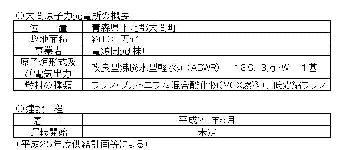 | ◆Jパワー 大間原発 大間原子力発電所は、電源開発(株)が下北郡大間町に138.3万kWの改良型沸騰水型軽水炉(ABWR)を建設する計画となっています。 |