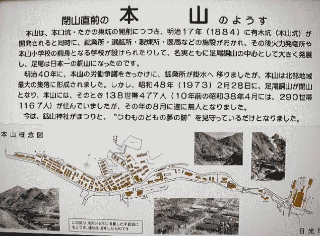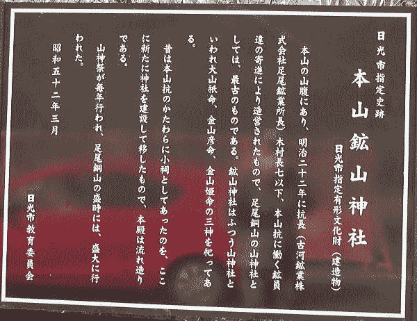 | 現地視察(1) 現地視察(2) 現地視察(3) 現地視察(4) 現地視察(5) 現地視察(6) 現地視察(7) 現地視察(8) 現地視察(9) 現地視察(10) 現地視察(11) 現地視察(12) 現地視察(13) 現地視察(14) 現地視察(15) ③本山地区から舟石峠へ ![]() 出典:一般社団法人日光観光協会、足尾散策ガイドマップ をもとに青山が作製 松木地区にある足尾砂防ダム、銅親水公園、環境学習センターそれに禿げ山となっている山々、植林活動を視察した後、私達は本山地区に戻り、古河橋から本山地区の裏山に入った。 グーグルマップでは、以下のような表示となっている。下の地図で足尾町赤倉と表記されている位置に古河橋が架かっていることになる。 ![]() 出典:グーグルマップ 下の写真は古河橋から本山地区の裏山に入る直前の写真である。 ![]() 出典:グーグルストリートビュー 下は入ってすぐにあった環境省、栃木県の「足尾銅山」の標識である。この道は、「関東ふれあいの道」と呼ばれていた。 ![]() 撮影:青山貞一 Nikon Coolpix S8 ![]() 撮影:青山貞一 Nikon Coolpix S8 以下は日光市の掲示板に見る「閉山直前の本山のようす」である。 ![]() 出典:日光市 以下は、現地にあった案内板である。この道を奥に向かって行くと、古河、足尾製錬所の関連施設、本山坑口、鉱山神社、社員寮などが存在していたことが分かった。 ![]() 足尾鉱山、古河足尾製錬所の本山概念図 出典:日光市 下の写真2枚は、すでに示しているが、古河橋を渡り「本山地区」に入ってすぐのところにある古河鉱業の足尾製錬所の一部である。 ![]() 古河鉱業の足尾製錬所の一部 撮影:青山貞一 Nikon Coolpix S8 ![]() 古河鉱業の足尾製錬所の一部 撮影:青山貞一 Nikon Coolpix S8 道を奥の方に進むと旧国鉄足尾線(貨物線)との立体交差にであった。現在、この旧国鉄足尾線(貨物線)は廃線となっている。 ![]() 旧国鉄足尾線との立体交差 撮影:青山貞一 Nikon Coolpix S8 車でさらに進むと、以下の写真にあるように道幅が半分に狭くなっていた。看板にはクマに注意と赤書きされている。 ![]() 撮影:青山貞一 Nikon Coolpix S8 道幅が半分と狭くなった道をさらに進むと、日光市の「閉山直前の本山のようす」に書かれていた本山鉱山神社跡があった。下は鉱山神社付近の本山地区の施設配置図である。 鉱山神社に行く途中には沢山の社員寮があり、本山坑口に向かう途中にはグランド、スケート場、プールなどがあることが分かる。 ![]() 出典:日光市 ![]() 撮影:青山貞一 Nikon Coolpix S8