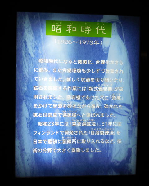 現地視察(1) 現地視察(2) 現地視察(3) 現地視察(4) 現地視察(5) 現地視察(6) 現地視察(7) 現地視察(8) 現地視察(9) 現地視察(10) 現地視察(11) 現地視察(12) 現地視察(13) 現地視察(14) 現地視察(15) ![]() 「足尾銅山観光」の入場切符 以下は「足尾銅山観光」のジオラマのうち坑内ジオラマを時代区分ごとに紹介したものもである。 トロッコ列車は、発車から10分も経たないうちに終着駅(下の写真)に到着した。下は終着駅のホームである。 ![]() トロッコ列車の終着駅 撮影:青山貞一 Nikon Coolpix S8 下は終着駅の先にある坑内。本物の坑内は、進入禁止となっていた。 ![]() 撮影:池田こみち Nikon Coolpix S6400 終着駅到着後、薄暗い坑道をかなりの距離歩きながら両側にあるジオラマを見学する。 ![]() トロッコ列車の終着駅からつづく坑道 撮影:青山貞一 Nikon Coolpix S8 そのあと、参加者は薄暗いジオラマの坑内を視察する。 ![]() 坑内神社 撮影:池田こみち Nikon Coolpix S6400 下はジオラマを撮影している青山貞一。 ![]() ジオラマを撮影している青山貞一 撮影:池田こみち Nikon Coolpix S6400 ![]() 撮影:池田こみち Nikon Coolpix S6400 時代区分の最初は「江戸時代」である。 ![]() 撮影:池田こみち Nikon Coolpix S6400 ![]() 狸掘りの工夫 撮影:池田こみち Nikon Coolpix S6400 ![]() 撮影:池田こみち Nikon Coolpix S6400 ![]() 撮影:池田こみち Nikon Coolpix S6400 ![]() 撮影:池田こみち Nikon Coolpix S6400 ![]() 撮影:池田こみち Nikon Coolpix S6400 ![]() 撮影:池田こみち Nikon Coolpix S6400 ![]() 負夫 撮影:池田こみち Nikon Coolpix S6400 ![]() 撮影:池田こみち Nikon Coolpix S6400 ![]() 撮影:池田こみち Nikon Coolpix S6400 ![]() 手掘坑夫 撮影:池田こみち Nikon Coolpix S6400 ![]() 撮影:池田こみち Nikon Coolpix S6400 ![]() 水替人夫 撮影:池田こみち Nikon Coolpix S6400 ![]() 撮影:池田こみち Nikon Coolpix S6400 ![]() ![]() 撮影:池田こみち Nikon Coolpix S6400 ![]() 撮影:池田こみち Nikon Coolpix S6400 ![]() 撮影:池田こみち Nikon Coolpix S6400 ![]() 撮影:池田こみち Nikon Coolpix S6400 ![]() 撮影:池田こみち Nikon Coolpix S6400 ![]() 撮影:池田こみち Nikon Coolpix S6400 ![]() 撮影:池田こみち Nikon Coolpix S6400 ![]() 撮影:池田こみち Nikon Coolpix S6400 ![]() 撮影:池田こみち Nikon Coolpix S6400 ![]() 撮影:池田こみち Nikon Coolpix S6400 ![]() 撮影:池田こみち Nikon Coolpix S6400 ![]() 休憩する工夫 撮影:池田こみち Nikon Coolpix S6400 ![]() 休憩する工夫 撮影:池田こみち Nikon Coolpix S6400 つづく |