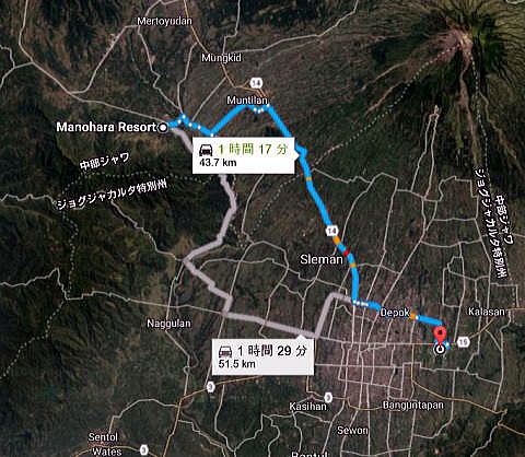 一方、LCCのエア・アジアのA320は、椅子の配置がゆったりしており、さらに椅子のつくりも睡眠をとるのに適しています。今まで他の航空会社の飛行機よりも乗り心地が大変よく、睡眠もとりやすいというメリットがありました。これは結構大切なポイントです。 次の問題は、いつものように空港からホテルまでどうやって行くかです。東南アジアの空港には、たくさんの客引きがいます。しかも日本人とみるや高額を吹っかけてくる白タクもたくさんいます。また東南アジアのタクシーは白タクでなくても、日本のようにメーターをつけていません。 今回もあらかじめ、空港からホテルまでの移動をあらかじめ詳細に調べておきました。 その結果、ミヤンマーのヤンゴン同様、空港内到着ロビーの一角にあるタクシーカウンターに行き、行き先を告げれば、担当者が適正な料金でタクシーを呼んでくれることが分かりました。 私たちの場合、タクシーカウンターで料金は270,000Rp、28番のタクシーに乗ってくださいといわれました。ちなみにインドネシア通貨はルピア(Rp)で、270,000Rpは約2200円です。 距離が50kmほどあるので、それで22000円なら日本の1/10程度のはずです。私たちはすぐにタクシーに乗り込みました。タクシーが車でもたくさんの白タクの呼び込みがありましたが、これらはすべて無視です。 下はジョグジャカルタ空港からボロブドウールのマノハラ・ホテルまでのルートと距離、標準的な時間です。私たちの場合は、約1時間30分で到着しました。 出典:グーグルマップ 上述したように東南アジアのタクシーはどこでもメーターがありません。したがって、乗り込む前に必ず運転手と交渉して料金を決めるのが鉄則です。 しかし今回は空港到着ロビーのタクシーカウンターで先払いで発券してもらっているので安心でした。しかも、仮にどんなに渋滞があっても料金は最初に決めた額というはすばらしいです(笑)。日本だと渋滞に巻き込まれると当初予定の2倍となることも多々ありますから。 下は空港からボロブドウール寺院遺跡に向かう途中のタクシーの中で撮影した写真です。 ![]() 撮影:青山貞一 Nikon Coolpix S9900 2016-11-17 車の運転は日本と同じ左側通行です。街路樹も多くなかなかすばらしい道路です。 下の3枚は空港からボロブドウールのマノハラホテルに向かう途中の沿道の風景です。 ![]() 撮影:青山貞一 Nikon Coolpix S9900 2016-11-17 ![]() 撮影:青山貞一 Nikon Coolpix S9900 2016-11-17 ![]() 撮影:青山貞一 Nikon Coolpix S9900 2016-11-17 当初予想された大渋滞もなく、約1時間半でボロブドゥール寺院遺跡から300mほどの距離にあるホテルに無事到着しました。 ホテルはボロブドゥール寺院遺跡に行くなら、ここが一番というような遺跡に至近なところにありました。しかも、そこそこの質をもったホテルです。食事は朝食だけですが、比較的リーズナブルなレストランもあります。 ![]() 撮影:青山貞一 Nikon Coolpix S9900 2016-11-17 つづく |