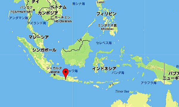 ◆インドネシア・ジャワ島のジョグジャカルタ 先に進む前に、ジャワ島のジョグジャカルタはじめジャワ島周辺の島々について概説しておきます。また2006年のジャワ地震についても概説します。 まず以下の地図で薄いピンク色の部分がインドネシア共和国です。確かにインドネシアは多くの島々から成り立っています。 インドネシアは、1万7千もの島からなる国です。この数はおそらく世界一のはずです。 ![]() 出典:Wikipedia 今回訪問するのは、インドネシアのほぼ中央にあるジャワ島のジョグジャカルタです。 そのジョグジャカルタがあるバリ島の西には、スマトラ島、東にはパプア島、北にはカリマンタン島が、さらに東にはセレベス島などがあります。セレベス島、別名スラウェシ島は、「種の起源」などで有名となった島で野生生物の宝庫と呼ばれる島です。またカリマンタン島はインドネシアの呼び名で、同島の北部はマレーシア領と呼ばれています。 私たち以前現地視察したのは、ボルネオ島の北部です。これらカリマンタン島あるいはボルネオ島にはオランウータンなどの希少な野生生物が生息しています。ただし、ボルネオ島では山林伐採などにより激減しています。 ![]() 出典:グーグルマップ ◆ジョグジャカルタの位置 ジョグジャカルタがあるジャワ島は、下図にあるようにインドネシアのほぼ中央に位置しています。 ジョグジャカルタは、インドネシアのジャワ島中南部にある特別州です。下図にあるように、位置は、ジャワ島の中部でインド洋に面しています。 ![]() 出典:グーグルマップ 最初の訪問地、ボロブドゥールは、下図にあるようにジョグジャカルタの空港から50km弱北北西に行った盆地にあります。 ![]() 出典:グーグルマップ 以下はジョグジャカルタの概要です。インドネシアにおいてジョグジャカルタは特別州となっています。