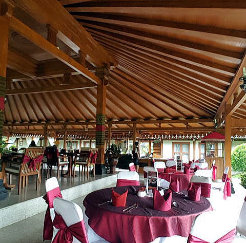 庭の要所にあるストゥーパ(仏塔)のレプリカです。この仏塔はボロブドウィール寺院のものと同じ形状をしています。 ![]() 撮影:青山貞一 Nikon Coolpix S9900 2016-11 このストゥーパ、仏塔は、仏舎利(釈迦の遺体・遺骨、またはその代替物)を安置した仏教建築をいいます。卒塔婆(そとば)、塔婆(とうば)、塔(とう)とも呼ばれています。 古代インドから中国に仏教が伝来した際、ストゥーパ(サンスクリット語) は「卒塔婆」と音訳されました。「塔婆」や「塔」はこの略です。 西洋では「仏塔」を指す語に、二種の出自の異なる語、すなわちストゥーパ(stupa)とパゴダ(pagoda)があります。ストゥーパはインド風のものを、パゴダは極東風のものを意味することが多いようです。ただし、パゴダは少々意味が広く、仏塔に限らず、層塔のような設計をした通常の宗教建築を指すこともあります。ミャンマーやタイには独自のパゴダがあります。 エントランス近くの廊下の壁に掲げられている仏教をテーマとした現代絵画です。蓮がモチーフとなっています。 ![]() 撮影:青山貞一 Nikon Coolpix S9900 2016-11 蓮(ハス)は、仏教では泥水の中から生じ清浄な美しい花を咲かせる姿が仏の智慧や慈悲の象徴とされ、様々に意匠されています。如来像の台座は蓮華をかたどった蓮華座であり、また厨子の扉の内側に蓮華の彫刻を施したりしています。主に寺院では仏前に「常花」(じょうか)と呼ばれる金色の木製の蓮華が置かれています。 ![]() 撮影:青山貞一 Nikon Coolpix S9900 2016-11 庭園には、大仏や仏教に関連する動物のレプリカがそこかしこにあります。 ![]() 撮影:青山貞一 Nikon Coolpix S9900 2016-11 ![]() 撮影:青山貞一 Nikon Coolpix S9900 2016-11 ![]() 撮影:池田こみち Nikon Coolpix S9900 2016-11-17 ![]() 撮影:青山貞一 Nikon Coolpix S9900 2016-11 仏陀は覚りを開くにあたり苦行を捨てスジャータから乳粥をもらって元気を回復して覚りを開きます。インド独立後、牛からはバターやチーズも取れます。インドでは牛を殺さないのです。仏陀は牛を称賛しました。牛は……母や父や兄弟や、また他の親族のようにわれらの最上の友であると。 マノハラホテル地震も、何世紀にもわたるボロブドゥール遺跡研究の環の中心になっています。 ![]() 撮影:青山貞一 Nikon Coolpix S9900 2016-11 ![]() Source: Manohara Hotel 下は視聴覚室の前の庭です。 ![]() 撮影:青山貞一 Nikon Coolpix S9900 2016-11-18 その一角には、下の写真にあるボロブドウール寺院の縮尺模型があります。 ![]() 撮影:青山貞一 Nikon Coolpix S9900 2016-11-18 下はレセプション近くにあッた民族音楽、ガムラン音楽用の木琴楽器です。 ![]() 撮影:青山貞一 Nikon Coolpix S9900 2016-11 定時になるとこのガムラン民族楽器の演奏者が木琴を引いていました。この種の楽器は、マレーシアのコタキナバルのホテルやミャンマーでも演奏を聴きましたが、すごく優しくひとの気持ちを和らげる音色を持っています。 ![]() 撮影:青山貞一 Nikon Coolpix S9900 2016-11 下で演奏が聞けます。非常に優しい音です。 撮影:青山貞一 Nikon Coolpix S9900 2016-11 下は、ホテルのレストラン、カフェです。これらの施設は、宿泊客だけでなく、たとえば、早朝や夕方にホテル主催で行われる朝日、夕日のボロブドウール寺院ツアーの参加客にも利用されています。 ![]() Source: Manohara Hotel 朝食はバイキング形式です。インドネシア料理はじめ普通の洋食、その他パスタ、麺類などもありました。 その他はメニューから選べます。メニューにはインドネシア料理以外にイタリア料理など要職も選べます。価格はリーズナブルだと思います。 ![]() Source: Manohara Hotel インドネシアは古くから香辛料の国として有名です。モルッカ諸島はニクズク、チョウコウ、コショウの生産地で、香辛料の島として名高かったと言えます。 オランダ植民地以前にスペインやポルトガルの貿易船が訪れ、新世界からの作物を持ち込み、その後インドネシア各地で栽培されるようになっています。スペイン人はメキシコからフィリピン経由でトウガラシ、サンドマメ、トマト、トウモロコシ、ジャガイモをインドネシアに持ち込んでいます。 ポルトガル人はアフリカとブラジルからピーナッツ、パパヤ、パイナップル、サツマイモ、キャッサバを持ち込んでいます。 オランダ人はキャベツ、ニンジン、カリフラワーを持ち込んでいます。さらに中国人は大豆製品、麺類をもたらしました。インドからはタマネギ、ニンニク、ナスなどの野菜とカメムシソウ、クミン、ショウガ、タマリンドなどが伝えられています。 インドネシア料理は諸外国の影響を受けていいます。ここジャワ島ではテンペ(tempe)や豆腐と野菜を使った料理が発達しています。テンペはジャワ人独特の食文化から発想した健康食品で、現在では豆腐とテンペ料理がインドネシアの各地で見られます。 インドネシア料理の特徴の一つは、揚げ物の種類が多い事です。テンペ、豆腐、鶏肉、干物、牛肉、魚、エビなどを油で揚げて調理します。西ジャワ州のスンダ料理は生野