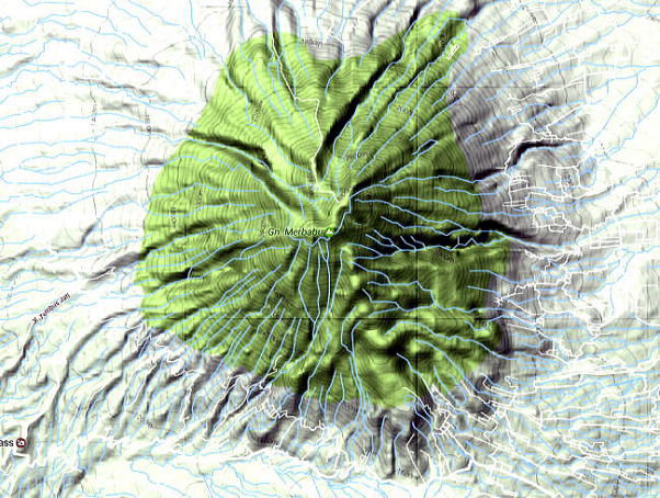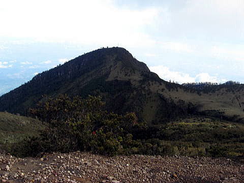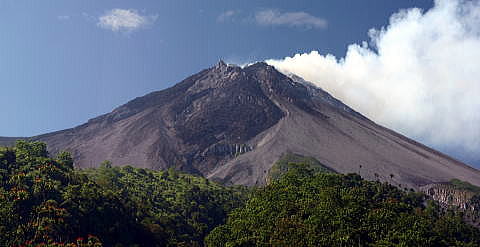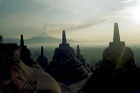 ![]() 2005年7月のムラビ山の姿 出典:Wikipedia ![]() ボロブドゥール寺院のストゥーパとムラピ山 また以下のラウ山も中部ジャワにある活火山です。 ![]() 出典:Wikipedia ![]() Sudut Lain dari Gunung Lawu, Puncak Hargo Dalem ラウ山 出典:Wikipedia ボロブドゥール寺院遺跡総面積はおよそ1.5万m2。高さはもともと42mでしたが、現在は破損して33.5mになっています。 先にホテルのところで紹介したように、ボロブドゥール寺院とマノハラ・ホテルとは以下のような位置関係にあり、ボロブドゥール寺院視察には、このホテルに宿泊すればベストで、時間の短縮にもなります。しかも、ホテル宿泊者にはいろいろな特典があります。とりわけ、ホテル内の映像視聴室で見たDVD(ボロブドゥールの教え)は貴重なものです。 ![]() Source:Google Map ボロブドゥール寺院の周りには、ほぼ円形の周回道路があります。私たちが宿泊したホテルはその周回道路の南東すぐ外側にありました。ボロブドゥール寺への出入りが自由なチケットがもらえるので、夕焼け、日没時における写真撮影も楽にできます。 ボロブドゥール寺院を中心に円があるのは、環状道路です。この環状道路の半径は約150mです。ホテルとは200〜250mの距離関係にあります。 ![]() Source:Google Map つづく |