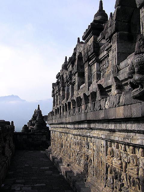 ◆ボロブドゥール寺院の方形壇回廊 ここでは、ボロブドゥール寺院の5層の方形壇(露天の回廊)と、それぞれの方形壇の露天回廊の両側にあるレリーフ*について解説し、各方形壇のレリーフの写真を紹介します。