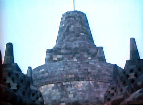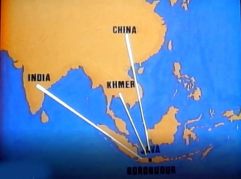 ![]() ここから以下のナレーションが入ります。 今から1000年以上昔、世界の歴史の流れから忽然と姿を消す前のおよそ150年間、このボロブドゥールの地は世界有数の聖地巡礼の地として知られていました。 ![]() 人々は何日、何十日、時には何か月もかけて船で、徒歩で、あるいは馬や象の背に揺られ、仏の光を求めてボロブドゥールへの旅を重ねたのでした。 ![]()