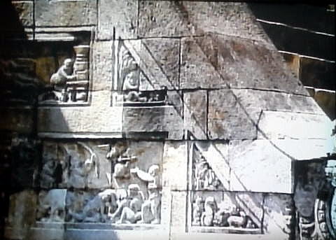 ![]() その仏の光を現代に生きる私たちも聖地巡礼をすることによって得ることができるのででしょうか? ![]() ![]() 私たちの聖地巡礼の出発点、それはムンドゥッ寺院(Candi Mundut)です。 註:この寺院は、ボロブドゥール寺院より、数km東側にある非常に古い寺院です。ちなみに私たちは翌日11月19日の午前中に行きました。 ![]() ムンドゥッ寺院の石の間に一面に取り付けられたレリーフは、動物の姿を借りた人の世の寓話です。 ![]()