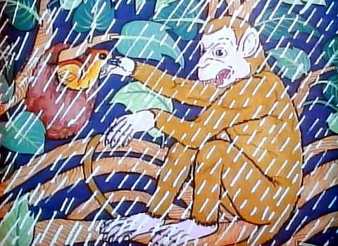 <寓話2> 猿と鳥 猿が一匹、木の下で雨に濡れて震えています。 これを見た鳥が言いました。「おまえさん、私のように雨期が来る前に住む家を造っておけば良かったのさ」と。 ![]() 猿は腹を立て鳥の巣を壊してしまいました。 ![]() 以後一生二人は雨の中で震えることになってしまいました。 ![]() 人にお説教をするよりは手をさしのべた方がよいことが時にはあるものです。 註)下はこの寓話にある絵の実際のレリーフです。ムンドゥッ寺院にあります。 ![]() つづく |