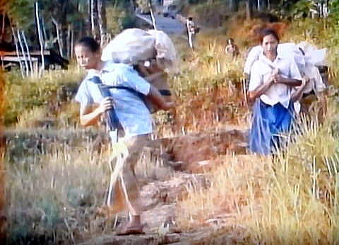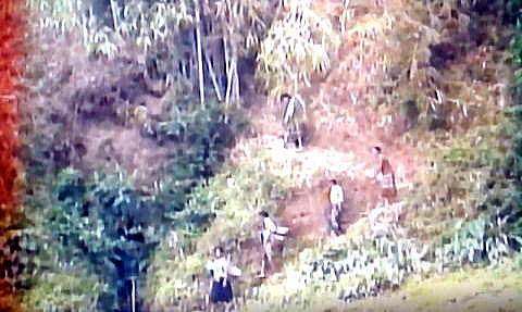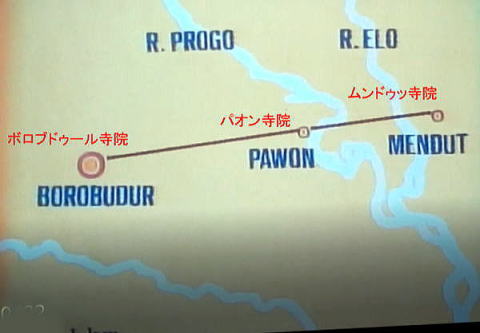 下はムンドゥッ寺院のお堂の入口です。中には本尊の釈迦如来の他左右に2つの仏像があります。 ![]() 下の写真の中央が本尊、釈迦如来の仏像です。 ![]() ![]() ムンドゥッ寺院を拝観した人々は、「ボロブドゥールの教え」を受けにムンドゥッ寺院からボロブドゥール寺院へ旅立つことになります。 註)下図を見れば分かりますが、右から左へ、ムンドゥッ寺院、パワン寺院、ボロブドゥール寺院の3つの寺院は、横一線に並んで配置されています。 ![]() 今なら各寺院の間は、車で5−6分で行き来できますが、当時は大変でした。 ![]() その昔、人々は徒歩で、ムンドゥッ寺院からパオン寺院に向かいました。その間には2つの川があります。 人々はまず谷を下ります。 ![]() 下の写真にあるように、衣服をたくし上げ川を渡りました。その後、渡し舟が、そして橋がかかるようになります。 ![]() その後、川を渡る手段は渡り船となりますが、 ![]() それでも、二つの川を渡った人々は、次に山を上ります。 こうして次の寺院であるパオン寺院にたどりつき、一息ついたのです。 ![]() 下はパオン寺院です。 パオン寺院 ![]()