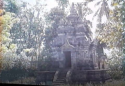 第三部 仏陀の生涯 ボロブドゥール寺院の方形基壇回廊には120面もののレリーフがあり、そこに有名な「仏陀の生涯」が刻まれています。 DVDでは、そのレリーフに刻まれた「仏陀の生涯」の図絵をもとに進行します。 DVDでは、最初にボロブドゥール寺院とムンドゥッ寺院との関係についての紹介があります。 ムンドゥッ寺院の詳細は、11月19日(3日目)のムンドゥッ寺院をご覧ください。 以下がムンドゥッ寺院の外観です。非常に古い寺院です。