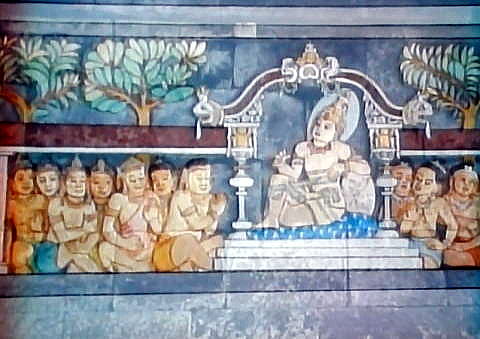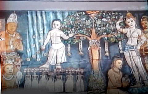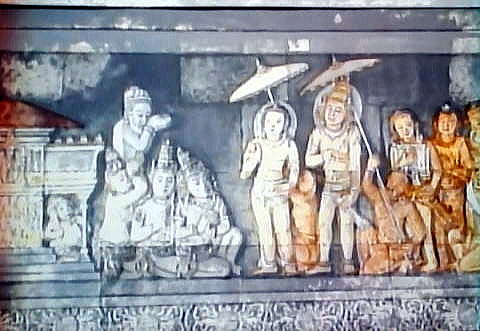 【仏陀の誕生】 仏陀の誕生は不思議な出来事に充ち満ちたものでした。 仏陀は誕生と同時に一歩一歩歩み始め、仏陀が歩いた跡には美しい蓮の花が開いていきました。 註)下は誕生した仏陀のレリーフです。 ![]() ![]() マヤ夫人は仏陀の誕生後まもなく世を去り、仏陀はその叔母の手で養育されます。 ![]() 仏陀が寺院に至るとすべての仏たちはその台座より下りて、仏陀に敬慕の念を表します。 こうして仏たちは仏陀がいかなる仏より偉大な存在であることを示します。 註)下のレリーフの左にいる三人の人物が仏陀を訪れた三人の神々を表します。 註)下のレリーフは、仏陀に尊敬の念を表す神々です。 ![]() 青年に達した仏陀は、父王の計らいによって妃を迎えます。 ![]() ![]() 迎えた妃の名はゴーマと言いました。 註)下のレリーフは、御妃を迎える仏陀です。左の女性が妃のゴーマです。 ![]() 父の国王は仏陀に季節に合わせて3つの別邸を与えます。 ![]() A−15 (青山メモ: 出家する仏陀 仏陀は王宮を去ります) ![]() つづく |