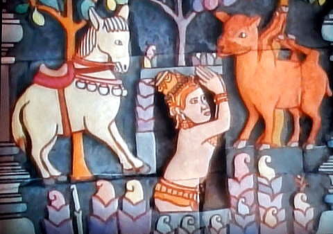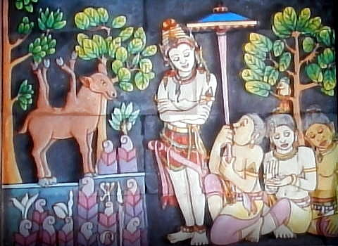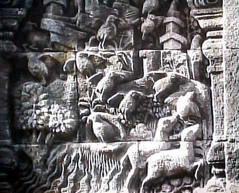 ◆ウズラに化身した仏陀 仏陀が一羽のウズラとして生活を送っているとき、森に火事が起こりました。 動物たちは火の中を逃げまどいます。 ![]() 註)以下はボロブドゥール寺院の基壇回廊にある実際のレリーフです。 ![]() この時、まだかよわい 雛のウズラは火に向かって力と真理に満ちた聖なる言葉で語り掛けます。 火はやがて静まり森に住むすべての生き物は、命を落とすことなく済みました。 ![]() これは肉体の力より精神の力を重んじる仏陀の生き方を知ることが出来事る出来事でした。 ◆八つの足をもつシカに化身した仏陀 あるあとき仏陀は、背に四本、腹に四本、合計八本の足をもった鹿として生涯を送っていました。 この鹿は、腹の側にある足が疲れると、身体を一回りさせて、背にある足で、さらに歩行を続けることができるのです。 ![]() このシカが、狩りをする王に追われるという出来事がありました。 ![]() 走り続けることで疲れることがないシカを追い続けた王はついに谷に落ちてしまいました。 ![]() この時シカは、逃げ去ることなく、かえって王を谷底から引きずりあげるのでした。 ![]() ![]() つづく |