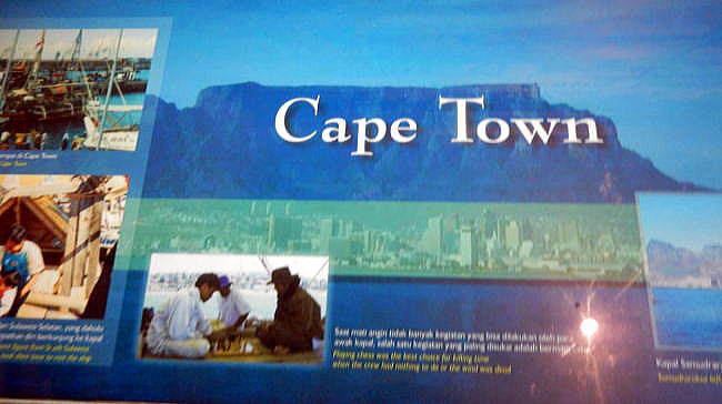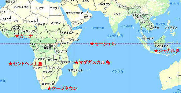 2003年9月12日に、船はインド洋の海鳥のコロニーで有名なセーシェルのビクトリアでドッグインに成功しました。 2週間後の2003年9月29日、サムドラ・ラクサ船は東アフリカのマダガスカルに向けセーシェルを出航します。 10月14日に、サムドラ・ラクサ船はマダガスカルのマハジャンガに到着しました。さらにマダガスカルを出航後、10月26日、サムドラ・ラクサ船は、南アフリカの喜望峰(ケープタウン)に向けて再び帆を上げます。 ケープタウンに向かっての航行で11月16日、一行はリチャード湾に停泊し、12月1日には、ダーバン港に停泊します。さらに12月7日にはポートエリザベスで停泊し、2004年1月5日にサムドラ・ラクサ船はケープタウンに到着しました。 サムドラ・ラクサ船はケープタウン出航後、セントヘレナ島に停泊します。このセントヘレナ島はナポレオンがワーテルローの戦いで敗北し島流しされたことで有名です。さらに、アフリカ本土から2000km西に離れたセントヘレナ島を船は赤道に向かって出航しました。 さらに約2週間後の2004年1月17日、サムドラ・ラクサ船はガーナのアクラに上陸しました。アクラは西アフリカ・ガーナの首都です。セントヘレナ出航後、到達しました。シンプルな木造船でジャカルタを出航後、半年以内でアクラに到着したのです。サムドラ・ラクサ船は 5ノット超の平均速度で11000マイルを航行し112日間海でアフリカのガーナまで到達したのです。 しかし、サムドラ・ラクサ船は昔の船と異なり、GPS、衛星電話はじめ他の近代的な航法装置を装備しています。多くの人が関与し、ボロブドゥール寺院の回廊でのレリーフ船との出会いから今回の夢を実現するため多くの人々が努力を重ねてきたのです。 以下は、サムドラ・ラクサ船の主な停泊地です。 ![]() 出典:グーグルマップ 以下は海洋を進むサムドラ・ラクサ船です。 ![]() Source:Museun Kapal Samudra Raksa ![]() Source:Museun Kapal Samudra Raksa 以下は喜望峰(ケープタウン)、アックラ、セントヘレナなど主な寄港地の写真です。 ![]() 南アフリカ、ケープタウン到着時の写真 撮影:池田こみち Nikon Coolpix S9900 2016-11-18 ![]() 南アフリカ、ケープタウン 出典:グーグルマップ ![]() 西アフリカ、ガーナの首都アクラ到着時の写真 撮影:池田こみち Nikon Coolpix S9900 2016-11-18 ![]() 西アフリカ、ガーナの首都アクラ 出典:グーグルマップ ![]() 大西洋、セントヘレナ島到着時の写真 撮影:池田こみち Nikon Coolpix S9900 2016-11-18 ![]() 大西洋、セントヘレナ島 出典:グーグルマップ 以下はSamudraraksa船で使われた生活用品などです。 ![]() 撮影:青山貞一 Nikon Coolpix S9900 2016-11-18 つづく |
