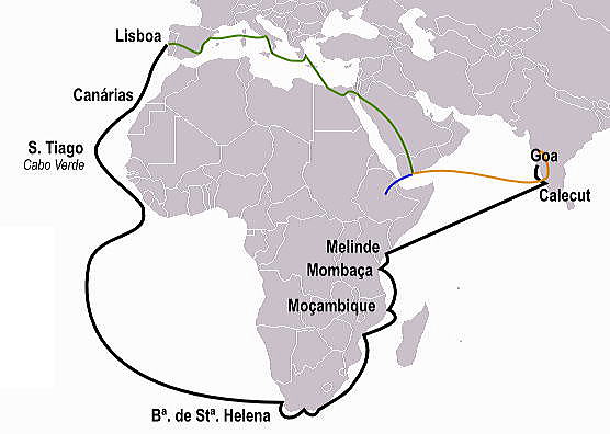 ![]() 1498年におけるヴァスコ・ダ・ガマの航海ルート(黒)。緑線は通常のルートであり、橙線は1488年のペロ・ダ・コビリャの旅程、青線はアフォンソ・デ・パイヴァの旅程です。 香辛料交易 出典:Wikipedia 以下は、主に海のシルクロード(香辛料交易ルート)に関する参考資料です。出典は主にWikipediaです。 ところで、経済的に重要なシルクロード(赤)と香辛料貿易のルート(青)は、オスマン帝国時代に遮断されますが、1453年のビザンツ帝国の崩壊は、アフリカ航路開拓のための探検を促し、大航海時代を引き起こしたのです。 香辛料貿易は、香辛料、香、ハーブ、薬物及びアヘンなどを対象としていました、古くから行われていた貿易(交易)のことを指します。アジア圏は古代から香辛料貿易に関わり、古代ギリシャ・ローマとも、ローマ-インドルートと香の道(Incense Route)を通して取引を行っていました。 ローマ-インドルートはアクスム王国(BC5世紀-AD11世紀)が1世紀以前に開拓した紅海航路を用いるなど海洋国家に依存していました。7世紀中頃、発達したイスラム圏がエジプトとスエズを結ぶ隊商路を遮断してしまうと、アクスム王国(及びインド)は、ヨーロッパ貿易圏から離れてしまいました。 アラブの貿易商は、レバント地方とヴェネツィアの商人を通してヨーロッパと取引を続けました。当初は、陸上ルートが香辛料貿易の主要なルートであったのですが、これは海上ルートによる商業活動の急激な成長にも繋がりました。 中世中期から終わりにかけて、香辛料貿易においてイスラムの貿易商達がインド洋航路を支配し、極東の資源地開発を行いまし。彼らはインド洋航路を通して、インドの貿易市場から、ヨーロッパへの陸上ルートに繋がるペルシア湾や紅海に向かって香辛料を輸送しました。このようにアラブの貿易商達が香辛料貿易を支配しましたが、1453年にオスマン帝国がビザンツ帝国を滅ぼし、地中海の制海権を得ると、これらを通る交易路に高い関税をかけたため、アラブ商人主導の貿易は衰退していきます。 大航海時代に入ると貿易は一変します。香辛料貿易は、大航海時代を通してヨーロッパの貿易商たちの主要な活動となりました。1498年にヴァスコ・ダ・ガマが喜望峰経由によるヨーロッパ-インド洋航路を発見し、新しい通商航路を開拓すると、ヨーロッパ人が直接インド洋始めアジア諸国に乗り込んでいったのです。特にポルトガルはいわゆる海羊帝国を築き、当時の交易体制を主導しました。 この大航海時代の貿易(中世の終わりから近世にかけての世界経済は、東洋におけるヨーロッパ優位の時代を作りました。国家は貿易の支配を目指して香辛料交易路を巡って戦いましたが、それは例えばベンガル湾航路のように、様々な文化の交流、あるいは文化間の貿易取引を橋渡しする役割も持っていました。しかし、ヨーロッパ支配地は発展するのが遅れたのです。 ポルトガルは、自身の影響下にあった古代のルートや港湾、支配の難しい交易路に制限や限定を行いました。オランダは、(時間はかかるが)インドネシアのスンダ海峡と喜望峰を直接結ぶ遠洋航路を開拓してポルトガルの支配する海域を避け、これら多くの問題を回避していたのです。 つづく |