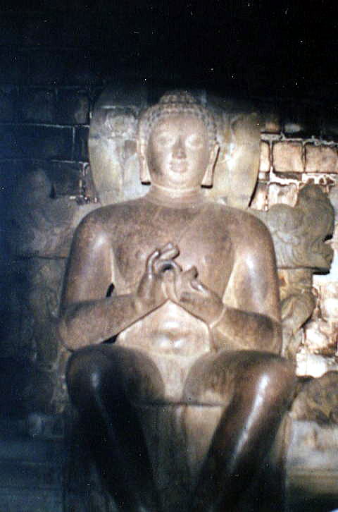 ◆ムンドゥッ寺院の仏像 ムンドゥッ寺院び堂内の正面には、世界一美しい仏像の一つとも評される高さ3mの如来像が安置されています。 右側には救世菩薩とも呼ばれる観音菩薩像が配置され、左側には智慧を司る文殊菩薩像が配置されています。 この三体の仏像は、一つの大きな粗面岩から作られています。 寺院内部の壁には、仏教において四天王の一角とされる夜叉毘沙門天や夜叉鬼子母神が描かれています。又、基壇には、「本生譚」や「仏伝図」など数多くの寓話が描かれています。 下はお堂の内部から外を撮影した写真です。 ![]() 撮影:青山貞一 Nikon Coolpix 9900 2016-11-19 ◆3つの仏像 上述のように、寺院の内部には3つの仏像があります。 その中央にあるのが下の2枚の写真の仏像です。高さは3メートルもあります。釈迦が説法したときのポーズ(説法印)という珍しい印相(手の組み方)をしています。 下の2枚は3つの仏像の中央で説法印をしている釈迦如来像です。 ![]() 撮影:i池田こみち Nikon Coolpix 9900 2016-11-19 ![]() This photo of Candi Mendut (Temple) is courtesy of TripAdvisor ![]() ムンドゥッ寺院の如来倚座像 ![]() This photo of Candi Mendut (Temple) is courtesy of TripAdvisor