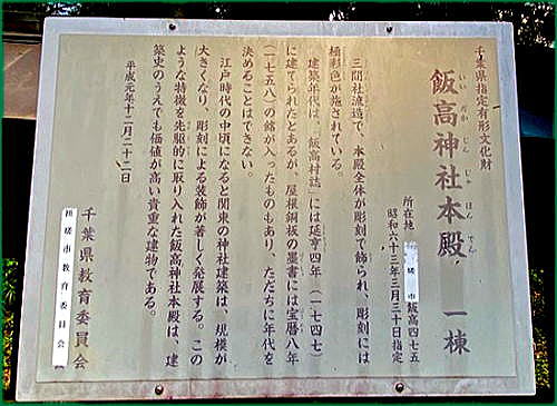 千葉県指定有形文化財 飯高神社本殿 一棟