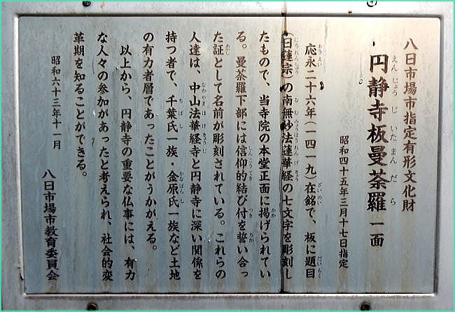 安久山日蓮宗の円静寺板曼荼羅一面の解説