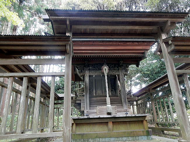 小さな神社だがご覧のように、拝殿と本殿が分かれ、本殿の周りには木でつくられた玉垣があり、中に彫刻づくしの本殿があった。