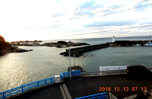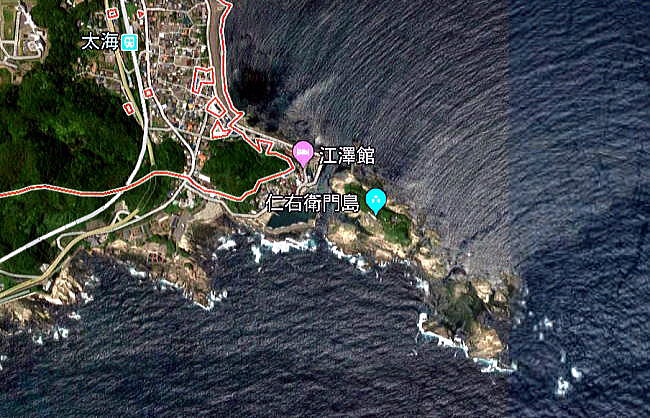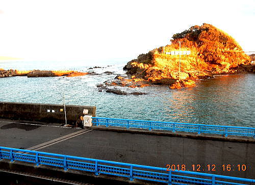 | 千葉視察総合目次 江澤館1 江澤館2 仁右衛門島1 仁右衛門島2 日蓮寺、誕生寺、清澄寺、多聞寺など、日蓮宗の寺周りが一段落し、早めに12月12日の宿泊地、鴨川市太海にある江澤館という旅館に行くことにしました。 外房線の太海駅から徒歩で13分という江澤館だが、車で向かうと海沿いの漁港にそって海側に進むことになりました。いったいどこまで進むのかと思っていると、ついに海に突き出た岬のさらに突端に出ました。 そこから少し、陸側に戻ったところに江澤館がありました。 ![]() 出典:グーグルマップ ![]() 出典:グーグルマップ 江澤館に入り、部屋に案内されてびっくり、眼前に以下の光景が広がります。何とこの島は、仁右衛門島(にえもんじま)といい、旅館の女性に伺うと、千葉県で唯一の島とのことで、仁右衛門島には毛漕ぎの船で渡れ、島内も案内してくれるとのことです。別途調べたら、大人一人1350円、往復の渡し船と島内見学料が含まれるとのことです。。 ![]() 撮影:青山貞一 Nikon Coolpix S9900 2018-12-12 ![]() 撮影:青山貞一 Nikon Coolpix S9900 2018-12-12 ![]() 撮影:青山貞一 Nikon Coolpix S9900 2018-12-12 望遠レンズで見たら「自然美と伝説「源頼朝・日蓮上人」の島、名勝 仁右衛門島 渡船手漕ぎ赤船のりば」とあります。 ![]() 撮影:青山貞一 Nikon Coolpix S9900 2018-12-12 この仁右衛門島は、千葉県鴨川市太海の沖合約200mにある島です。全島砂岩よりなる周囲約4kmの小さな島で、しかし、千葉県では最も大きな島です。源頼朝や日蓮の伝説で知られ、個人所有であるものの千葉県指定名勝となっているほか、新日本百景にも選ばれています。 ![]() 撮影:青山貞一 Nikon Coolpix S9900 2018-12-12 島主である平野仁右衛門の名に因み、この名前になったといわれています。夏涼しく冬暖かい風光明媚な自然の楽園です。金銀針茄子(キンギンハリナス)という珍しい植物もみられまあす。島の南側は荒々しい海岸線がみられ、自然の防波堤の役割も果たしています。 |