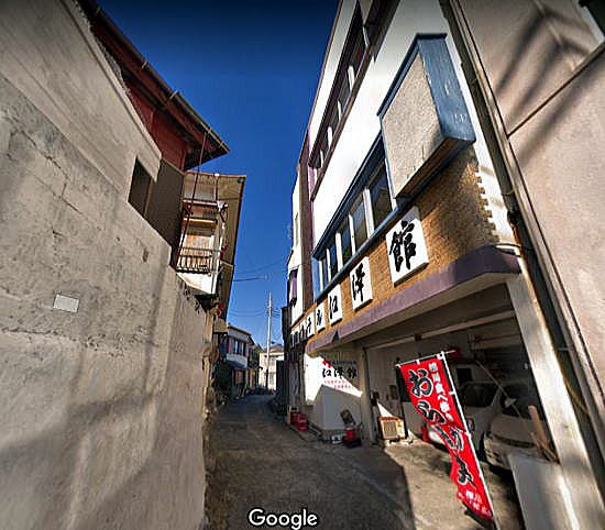 | 千葉視察総合目次 江澤館1 江澤館2 仁右衛門島1 仁右衛門島2 一方、先に述べたように、江澤館は歴史的建築物の3階の本館と細い路地を隔て鉄筋コンクリート3階建ての別館(海上ホテル)があり、何と本館と別館は地下道でつながっています。 下の写真は、グーグルストリートビューのものですが、左側の鉄筋コンクリート3階建ての建物と右側の本館とは地下道でつながっています。 ![]() 出典:グーグルストリートビュー ![]() 出典:グーグルストリートビュー 注)上の写真とは逆方向からみたものです。 追記 本館には4階がありますが、木造のため、旅館としての使用ができず、現在は使用していません。そこに、安井曾太郎画伯が定宿として使用していた2部屋続きの和室があり、現在は遺作が飾られています。 現在の本館と別館の攻勢は、おおよそ以下の通りです。 本館 1階 受付、土産物販売 2階 元々の8畳ほどの大きさの部屋を5つほどぶち抜いた 朝食用などの大広間 3階 もともとの部屋 別館 地下 本館との間の通路 1階 男子、女子用の風呂 2階 4〜5の部屋 3階 4〜5の部屋 以下は本館の見取り図です。 ![]() ![]() 出典:江澤館 下は本館1階の受付です。なお、本館から少し離れた場所に無料駐車場もありました。 ![]() 撮影:青山貞一 Nikon Coolpix S9900 2018-12-13 下は仁右衛門島がよく見える別館の角部屋(出典:www.booking.com)です。 ![]() 出典:www.booking.com この角部屋からは、下の仁右衛門島がよく見えます。 |