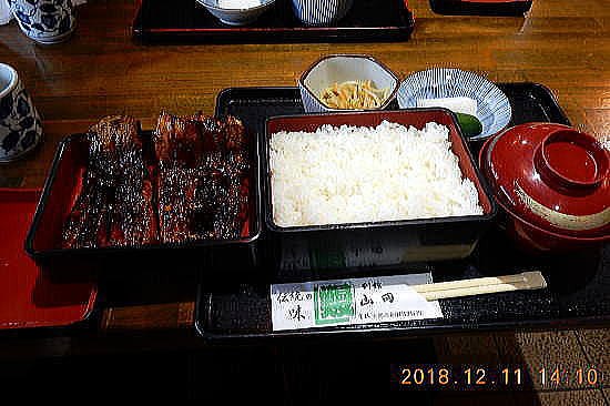 | 千葉視察総合目次 昼食 佐原の歴史的町並1 佐原の歴史的町並2 佐原の歴史的町並3 参考・水郷佐原の風景 伊能忠敬旧宅1 伊能忠敬旧宅2 伊能忠敬の生い立ち 法華経寺を参拝視察した後、私たちは千葉県銚子に近い香取市佐原にある山田うなぎ店別館で昼食をとりました。 ![]() 出典:グーグルマップ・ストリートビュー ![]() 山田屋別館 出典:グーグルマップ・ストリートビュー 下はそのうなぎ屋の蒲焼重の写真です。 この山田屋別館には15年以上前から佐原に友人がおり、佐原に来ると一緒に出かけていました。青山の知る限り、過去いろいろなところで頂いたウナギの蒲焼のなかで一番美味しいものです。 ![]() 撮影:青山貞一 Nikon Coolpix S9900 2018-12-11 ![]() 撮影:池田こみち Nikon Coolpix S9900 2018-12-11 ![]() 撮影:青山貞一 Nikon Coolpix S9900 2018-12-11 ![]() 撮影:青山貞一 Nikon Coolpix S9900 2018-12-11 ![]() 撮影:青山貞一 Nikon Coolpix S9900 2018-12-11 ![]() 撮影:池田こみち Nikon Coolpix S9900 2018-12-11 11日午後、蒲焼を食べた後、千葉県香取市の佐原の小江戸と呼ばれる町並みと伊能忠敬の旧家などをじっくりと視察しました。 佐原の歴史的町並1につづく 千葉視察総合目次 |