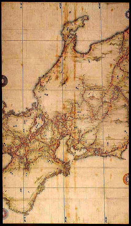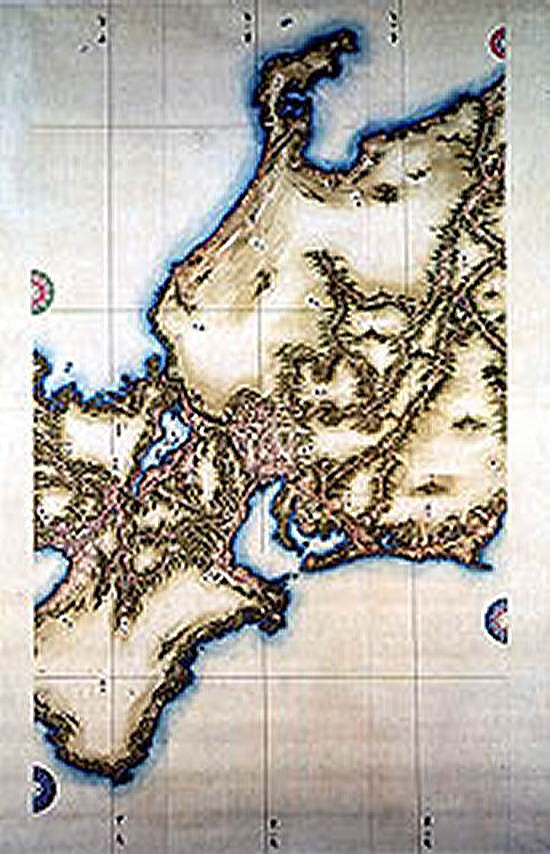 | 千葉視察総合目次 隠居・観測・測量 一次測量(蝦夷地) 二次測量(伊豆・東日本) 三次測量(東北・日本海)、四次測量(東海・北陸) 五次測量(近畿・中国)、六次測量(四国) 七次測量(九州一次)、八次測量(九州二次) 九次測量(伊豆諸島)、十次測量(江戸府内) 地図作成作業と伊能忠敬の死 地図の種類・特徴・精度、測定方法等 伊能忠敬記念館 伊能忠敬年表 参考・芝丸山古墳と伊能忠孝記念碑 参考・忠孝測量の碑と星座石 参考・伊能忠敬九十九里記念公園 参考・伊能忠敬参照文献一覧 ◆伊能忠敬 第三次測量(東北日本海沿岸) 測量計画 忠敬らは、前回計画を立てながらも実行できなかった蝦夷地の測量をやり遂げたい気持ちがありました。だが忠敬の立てた測量計画が幕府に採用される見込みは相変わらず薄かったのです。そこで、まずは内地の測量に従事した方がよいと判断しました。 享和2年(1802年)6月3日、忠敬は堀田正敦からの測量命令を、至時を通して聞きました。測量地点は日本海側の陸奥・三厩から越前まで、および太平洋側の尾張国から駿河国までで、これと第一次・第二次測量を合わせて東日本の地図を完成させる計画でした。また、8月に起きる日食も観測するよう指示されました。 本測量では人足5人、馬3匹、長持人足4人が与えられ、手当は60両支給されました。これは過去2回よりもはるかに恵まれた待遇で、費用の収支もようやく均衡するようになりました。 測量 一行は6月11日に出発、奥州街道を進み6月21日に白河まで辿り着きました。ここから奥州街道を離れ会津若松に向かい、山形、新庄などを経て、7月23日に能代に到着しました。ここで、8月1日に起こる日食を観測するための準備を整えました。しかし当日は曇りで、太陽は日食が終わる直前にほんの少し見えただけで、観測は失敗に終わったのです。 8月4日に能代を発ち、羽州街道を油川(現青森市)まで進みました。途中の弘前では宿の設備や対応が悪く、忠敬は役人に注意しました。このように第三次測量からは、忠敬が測量に協力的でない役人を叱りつけることがままありました。これは幕府の事業を請け負っているという自負が強くなってきたためだろうと考えられています。 油川からは第一次、第二次と同じ道をたどり、8月15日に三厩に到着しました。ここから算用師峠を越えて日本海側の小泊(現中泊町)に行き、そこから南下しました。 9月2日から6日まで二手に分かれて男鹿半島を測量し、9日からは象潟周辺を測量しています。当時の象潟は入り江の中に幾多の島々が浮かぶ景勝地でしたが、忠敬測量の2年後に起きた象潟地震によって土地が隆起し、姿を全く変えてしまったのです。そのため、忠敬によって実測された地震前の象潟の記録は貴重なものとなっています。 その後、越後に入ると、海岸沿いでも岩山が多くなり、苦労をしながらの測量となりました。9月24日に新潟、10月1日に柏崎、10月4日に今町(現上越市)に到着し、ここで海岸線を離れて南下しました。そして追分(現軽井沢町)から中山道を通って、10月23日に江戸に戻りました。 ![]() 大日本沿海輿地全図中図 東北 Source: The Sumitomo Foundation 地図作成等 江戸に帰った忠敬らは地図作成に取り掛かりましたが、今回の測量だけでは東日本全体の地図は作れないため、下図のみ作成して、享和3年(1803年)1月15日に幕府に提出しています。 また、今回の測量結果から忠敬は再度子午線一度の距離を計算し、28.2里という、第二次測量の時と同じ値を導き出しています。しかし至時は、この値は自分の想定していた値よりも少し大きいとして、忠敬の結果を信用しなかったのです。 忠敬はこの師匠の態度に不満を感じました。そして、「この値が信用できないというのであれば、今まで自分が行ってきた測量を全て疑っているということではないか、ならば今後測量を続けることはできない」と言っています。至時は忠敬を宥め、何とか次の測量の手はずを整えました。 第四次測量(東海・北陸) ![]() 『大日本沿海輿地全図』第76図 越後(越後・時水村・長岡・潟町) (国立国会図書館デジタルコレクションより) 測量 享和3年(1803年)2月18日、忠敬は至時を通じて堀田正敦からの辞令を受け取りました。今回の測量地域は駿河、遠江、三河、尾張、越前、加賀、能登、越中、越後などで、また、佐渡にも渡るよう指示されました。人足や馬は前回と同様で、旅費としては82両2分が支給されました。 2月25日に一行は出発し、東海道を沼津まで測量しました(第二次測量の再測)。沼津からは海岸沿いを通り、御前崎、渥美半島、知多半島を回って、5月6日に名古屋に着きました。名古屋からは海岸線を離れて北上し、大垣、関ヶ原を経て、5月27日に敦賀に到着しました。 ![]() 大図 渥美半島付近(千葉県香取市 伊能忠敬記念館所蔵) Source:Wikimedia Commons ![]() 『大日本沿海輿地全図』。中図のうちの一枚で、中部地方を示したもの。 出典:(一社)東京都測量設計業協会 ![]() 大日本沿海輿地全図中図 中部 Source: The Sumitomo Fou