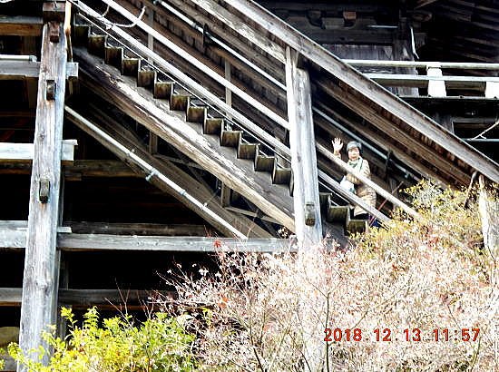 | 千葉視察総合目次 笠森寺1 笠森寺2 笠森寺3 笠森寺4 笠森寺5 参考・天台宗とは ◆大悲山 笠森寺 以下は、池田こみちが笠森寺の観音堂に上がって参拝した際に撮影した池田と青山の連続写真です。 観音堂には 75段の木の階段があり、それを上がった回廊からは、四季それぞれに美しい房総の山々が眼下に眺められます。 ![]() 撮影:青山貞一 Nikon Coolpix S9900 2018-12-13 下は観音堂の75段の階段の入り口から少し上ったところの写真です。この場所で200円の拝観料をはらいます。階段は左側が上り、右側が下りとなっています。 ![]() 撮影:青山貞一 Nikon Coolpix S9900 2018-12-13 以下は、階段の側面から青山が撮影した写真です。 ![]() 撮影:青山貞一 Nikon Coolpix S9900 2018-12-13 ![]() 撮影:青山貞一 Nikon Coolpix S9900 2018-12-13 ![]() 撮影:青山貞一 Nikon Coolpix S9900 2018-12-13 以下は、笠森寺観音堂の四方懸造、桁行五間、梁間四間の構造を池田が撮影した写真です。 ![]() 撮影:池田こみち Nikon Coolpix S9900 2018-12-13 ![]() 撮影:池田こみち Nikon Coolpix S9900 2018-12-13 以下は75段の木製階段を登り切り踊場そして回廊に出たところの写真です。 ![]() 撮影:青山貞一 Nikon Coolpix S9900 2018-12-13 ![]() 撮影:青山貞一 Nikon Coolpix S9900 2018-12-13 踊場、回廊からは、四季それぞれに美しい房総の山々が眼下に眺められます。今回は真冬ですが、笠森山から続く山々、さらに遠くには東京湾を眺めることができました。 ![]() 撮影:池田こみち Nikon Coolpix S9900 2018-12-13 ![]() 撮影:池田こみち Nikon Coolpix S9900 2018-12-13 ![]() 撮影:池田こみち Nikon Coolpix S9900 2018-12-13 笠森寺4につづく 千葉視察総合目次 |