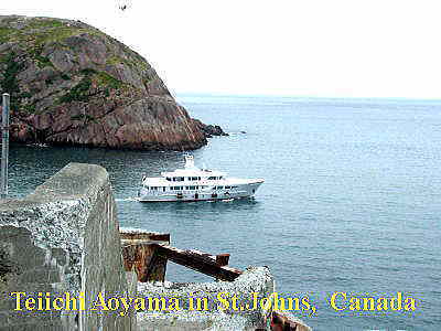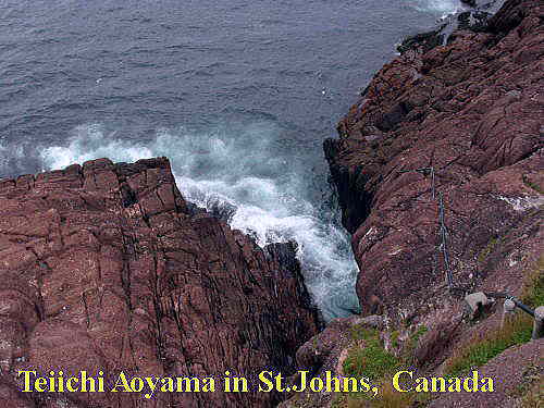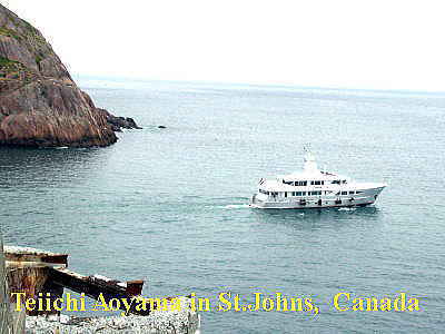 下はシグナルヒルと灯台の間をぬってセントジョーンズ湾を出る船。この海峡は結構深く、大型客船も行き来する。フランスの国旗を付けた客船も出て行った。