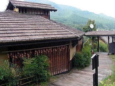 ■秋の信州街道と秘湯の旅 @田代湖と鹿沢高原 A鹿沢温泉と新鹿沢温泉 B信州街道と万騎峠 Cかやぶきの郷、薬師温泉・旅籠 こうして9月13日、わたくしたちは以前から気になっていた上州の秘湯、薬師温泉に向かい午前11時過ぎに、やっとのことで国道406号線にぶつかった。ここから薬師温泉は近いはずだ。 そして薬師温泉に到着した。 ![]() 撮影:青山貞一、Nikon Cool Pix S10 ここであらかじめ草津温泉でもらったカラーパンフレットにあった「かやぶきの郷、薬師温泉旅籠」を目指す。アチコチに看板があるので、すぐに目的地に到着した。 薬師温泉旅籠正式な地番は、群馬県吾妻郡東吾妻町本宿である。私たちの別荘も群馬県吾妻郡にあるが、薬師温泉までは同じ吾妻郡で最も遠いようだ。 ![]() 「かやぶきの郷」の位置 出典:かやぶきの郷、薬師温泉旅籠のパンフより 「かやぶきの郷、薬師温泉、旅籠」は、本物のかやぶきの農家を全国各地から集めた今流に言えば、テーマパークだが、本業はあくまで温泉付きの宿泊(宿=旅籠)である。 パンフでは、「かやぶきの郷、薬師温泉、旅籠」について次のように書いてある。 かやぶきの郷、薬師温泉、旅籠は、上州吾妻にある浅間隠山の山懐に抱かれた静かな一軒宿です。この地に二百余年前より自噴する天然温泉を懐かしい古民具の数々...旅装をとき、ゆるやかに流れる時感を心ゆくまでお楽しみ下さい。 今回私たちは、あくまで日帰り湯コースで来たのだが、実際、「かやぶきの郷」に入って分かったことある。それは、ここの施設はどれもこれも本物であることだ。そして管理が非常に行き届いている。さらに従業員の誰もが徹底的に客に対する訓練を受けていることだ。 「かやぶきの郷」は、@宿泊客以外に、A施設見学者、B施設見学+日帰り温泉入浴者の区分がある。私たちはBの施設見学+日帰り温泉入浴者として入園した。大人は一人当たり1200円である。ちなみにAは500円である。ホームページにある関連サイトに割引券があり、それを持参すると1200円が1100円と、100円割引される。 「かやぶきの郷」は、秘境の秘湯にふさわしい山奥にあり、自然と調和している。こんな温泉、宿泊施設今まで見たこともない! すばらしいの一言である! 実際、インターネットのWebで公開されている利用客のコメントをみてもこのことはよく分かる。 ひとり一泊2万5千円前後でありながら、客は一様にここの施設、温泉となによりももてなしを高く評価しているからだ。 ![]() 入り口。長屋門 撮影:青山貞一、Nikon Cool Pix S10 ↑は入り口、エントランスである。パンフでは長屋門と称している。長屋門は合掌茅切妻造で東北地方の庄屋や豪農の家を百年以上も支えてきた古材を主軸に組み合わせて造られている。この長屋門が「かやぶき郷」の玄関口である。屋根の長さは約26m、棟木までの高さは約9m、木造2階建てである。 ![]() 入り口。長屋門の反対側 撮影:青山貞一、Nikon Cool Pix S10 ![]() 撮影:青山貞一、Nikon Cool Pix S10 ↓は「かやぶきの郷」の全体構成立体地図。敷地全体は傾斜地にあり、かやぶきの家と家を枕木の回廊がつなぐ構造となっている。 敷地の最上部に駐車場があり、その前に入り口(長屋門)がある。一段降りたところに茶房、厠、そば打ち匠房などがある広場ある。そこからさらに枕木で出来た階段を下りると左側に南部曲がり屋の木村家がある。 さらに降りると左側に出羽の国、紺野家がある。 紺野家から枕木の階段を降りきると、真ん前に勇壮な本陣がそびえる。雪見の露天風呂に入るにはこの本陣で荷物を預ける。他方、宿泊客はせせらぎ館ややすらぎ館にとまる。 ![]() かやぶきの郷の全体構成 出典:パンフより ![]() 南部曲がり屋 木村家の解説板 撮影:青山貞一、Nikon Cool Pix S10 ![]() 南部曲がり屋 木村家 撮影:青山貞一、Nikon Cool Pix S10 ↑の 南部曲がり屋 木村家は江戸時代(安政2年)スギクリケヤキなどで建てられた曲がり屋の代表的な構造。内部には薬膳願所や職人店がある。↓は木村家の外壁。 ![]() 南部曲がり屋 木村家の外壁 撮影:青山貞一、Nikon Cool Pix S10 ![]() 撮影:青山貞一、Nikon Cool Pix S10 ↑は数百点の時代ものが満載されている。鎧、兜などの武具、蒔絵、古伊万里、日本の古い灯火器など、貴重な品々を収集し展示している。 ↓の時代箪笥回廊には、嫁ぐ娘の幸せを祈り祝布団やふろしき、箪笥、筒書きなどが展示されている。 ![]() 時代箪笥回廊 撮影:青山貞一、Nikon Cool Pix S10 ↓の木綿の藍染めは必見である。 ![]() 時代箪笥回廊 撮影:青山貞一、Nikon Cool Pix S10 時代箪笥回廊 撮影:青山貞一、Nikon Cool Pix S10 ![]() 南部曲がり屋 木村家の鐘楼 撮影:青山貞一、Nikon Cool Pix S10 ↓は木村家がある階を一段下りたところにある時代もの展示処。 ![]() 時代物展示処 撮影:青山貞一、Nikon Cool Pix S10 下は木村家から紺野家にかけての前にある甘味処の蔵戸。ここで女性軍は「クリームあんみつ」を注文。常時ひとはおらず、客がインターホンのある番号を押すと店員が来る仕組みだ。非常にリー