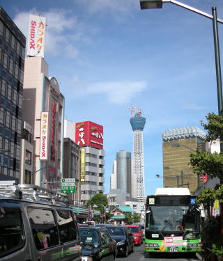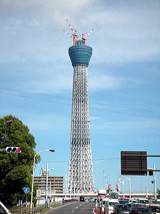 2010年7月14日の午後、ひさびさ浅草にでかけた。 浅草寺の近くにある公立高校から模擬授業を依頼され、地球環境問題について模擬授業を高校生に1時間半ほど行った。生徒はしっかりと私の話を聞いてくれた! 模擬授業を終えた後、浅草寺(せんそうじ)をひさびさに訪問した。 その途中、隣の墨田区で建設中の東京スカイツリーという電波塔が良く見えた(下の写真)。7月14日は前日までの雨天から一転し、真夏の日差しが照り返す好天となったこともあって、スカイツリーの全貌が良く見れた。 撮影:青山貞一、Nikon Cool Pix S10 2010.7.14 この東京スカイツリー(Tokyo Sky Tree)は、東武鉄道と東武タワースカイツリーによって東京都墨田区の押上に建設されている電波塔である。 東京スカイツリーの位置(地図中左に浅草寺が見える) 出典:マピオン 着工当初は高さを610.6mとする計画であったが、2009年10月16日に高さが634.0mとなるように計画を変更したた。完成すれば自立式電波塔としては世界一の高さとなるという。 Wikipediaによれば、スカイツリーは下図のごとくなので、全体が634mのうち、現在は360〜370mまで完成していることになる。 出典:Wikipedia スカイツリーは2008年7月14日に着工、2011年12月から遅くとも2012年早春に竣工の予定という。これはいわゆる地デジ移行に合わせたものだろうが、BS、CSなどインド洋上の静止衛星を使えば、日本中くまなくテレビ電波が送れる時代、はたして600mを超す電波塔がどれだけ必要とされるのか疑問がある。 というのも、いくら電波塔を高くしたとしても、今の東京はじめ首都圏では100mを超す超高層ビルがこれでもか、これでもかと建築されている。となればアナログよりましとはいえ、ビル影の難視聴地域があちこちにでき、綺麗に見るためには、それぞれ同軸や光ケーブルを使った共同視聴システムに頼らざるを得ないからだ。 もっぱら、衛星ではよほどチャンネルを多く取らない限り、地方固有の番組を流すわけにはゆかないから、VHFやUHFを使って一定地域を対象としたテレビ送信が必要となるのだろう。 とはいえ、テレビの内容が今のように、際限なく劣化し、エロ・グロ・ナンセンスとなり、同時に大メディアがこぞって情報操作による世論誘導を行っている以上、いくらデジタルハイビジョンによる地デジ放送を行ったとしても、視聴者が増えるとも思えない。 あるブログにも私の考えに近くものがあった! ....現状の民放の放送内容の酷さはどうだ。馬鹿なお笑いタレント(少しも笑えない奴らばかりだが)が騒ぎまくるばかりのクズ放送ばかりで、そんな程度のものを鮮明映像で見る必要性もない。現状のアナログ放送で十分すぎる。それに、デジタルならBSとCSがあり、それらのほうが難視聴地域解消にも役立ち、地上デジタルなんかとは月とスッポンほど有用だ。なのに、民放のBSデジタル放送はテレビ通販のクソ番組ばかり。そのBSデジタルを有効利用するのが地上デジタル導入なんかより重要だろうが。 やはり地デジなどのデジタル化、ハイビジョン化は、総務省(旧郵政省)と放送業界それに家電業界がつるんだ電波を使った既得権益、利権の拡大策と思われても仕方ないだろう。 いくら技術的に見て仔細で素晴らしい画像が受像できても、今のようなバカバカしい番組、それにどこをまわしても同じようなニュースや情報番組ばかりでは、どうにもならない。 また世は双方向コミュニケーションが可能なインターネット時代である。一方的にバカバカしい、エロ・グロ・ナンセンス情報とCMを送ってくるテレビメディアは、ごく一部以外、今後、見識、知性ある人間は見ないだろう! 下は、雷門通りの吾妻橋側付近からみたスカイツリーである。 撮影:青山貞一、Nikon Cool Pix S10 2010.7.14 下はさらに雷門通りを浅草寺側に行ったところから撮影した写真である、 撮影:青山貞一、Nikon Cool Pix S10 2010.7.14