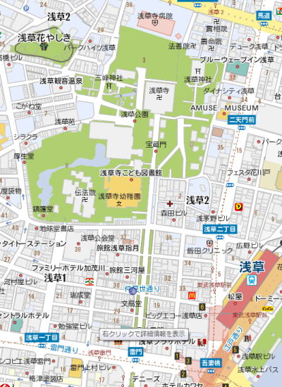 現在の浅草寺一帯は、現地でよく見ると、周囲にはたくさんのビルがあるものの、上の東都金龍山浅草寺図とほとんど変わらないことが分かる。