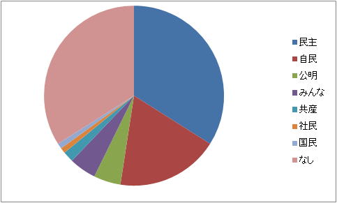 菅氏 66%、小沢氏18%となっているが、他の新聞社、通信社でもほぼ同じような数字となっている。 この結果を見ると、圧倒的に菅直人首相が小沢一郎前幹事長をリードしているように見える。事実、ほぼすべてのテレビ番組、新聞記事は菅氏 66%、小沢氏18%と報じており、読者は菅首相が圧倒的に小沢氏をリードしていると思うだろう。 次に、下は読売新聞が2010年9月3−5日(同日に同一人物)に実施した<支持政党>に関する世論調査結果である。民主党が全体の35%を占めているが、自民党が19%、公明党が5%....そして見ればわかるように、支持政党なしが33%もある。