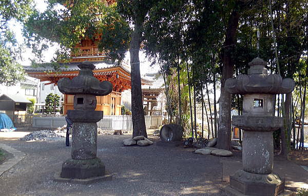 ◆増上寺の石灯籠現地調査 鐘楼や三重の塔と同じ、小高い丘の外れに墓地があり、その墓地の入口に増上寺の石灯籠がありました。下はその写真です。向かい合わせに置いてありました。なお、写真の右側の赤い旗は薬師堂のものです。 ![]() 円福寺にあった増上寺の四つの石灯籠 撮影:池田こみち Nikon Coolpix S6400 2015-3-24 ![]() 円福寺にあった増上寺の石灯籠 撮影:池田こみち Nikon Coolpix S6400 2015-3-24 ![]() 円福寺にあった増上寺の石灯籠 撮影:池田こみち Nikon Coolpix S6400 2015-3-24 ![]() 円福寺にあった増上寺の石灯籠 撮影:池田こみち Nikon Coolpix S6400 2015-3-24 ![]() 円福寺にあった増上寺の石灯籠 撮影:池田こみち Nikon Coolpix S6400 2015-3-24 下には文昭院の刻印が見えます。 ![]() 円福寺にあった増上寺の石灯籠 撮影:池田こみち Nikon Coolpix S6400 2015-3-24 この小高い丘には、以下の四つの石灯籠がありました。 徳川家石灯籠4基 桂昌院(家光の側室、綱吉の母。お玉の方)2基 文昭院 1基 有章院 1基 以下は、徳川家の院です。2 の秀忠以降は、黄が寛永寺、白が増上寺に霊廟があります。 1 徳川家康 安国院(あんこくいん) 日光東照宮、上野東照宮、芝東照宮、 仙波東照宮(川越市)、久能山東照宮など 2 徳川秀忠 台徳院(だいとくいん) 増上寺 3 徳川家光 大猷院(たいゆういいん) 寛永寺 4 徳川家綱 厳有院(げんゆういん) 寛永寺 5 徳川綱吉 常憲院(じょうけんいん) 寛永寺 6 徳川家宣 文昭院(ぶんしょういん) 増上寺 ○ 7 徳川家継 有章院(ゆうしょういん) 増上寺 ○ 8 徳川吉宗 有徳院 (ゆうとくいん) 寛永寺 9 徳川家重 惇信院 (じゅんしんいん) 増上寺 10 徳川家治 浚明院(しゅんめいいん) 寛永寺 11 徳川家斉 文恭院(ぶんきょういん) 寛永寺 12 徳川家慶 慎徳院(しんとくいん) 増上寺 13 徳川家定 温恭院(おんきょういん) 寛永寺 14 徳川家茂 昭徳院(しょうとくいん) 増上寺 なお、桂昌院(家光の側室、綱吉の母。お玉の方)の多宝塔は、清瀬市からほど近い所沢市山口にあります。その意味では、最低限でも多宝塔と石灯籠を同じ寺の中に置いてあげる配慮が必要と思います。 もちろん、以下の多宝塔も、もともとは東京芝、増上寺の霊廟にあったものです。