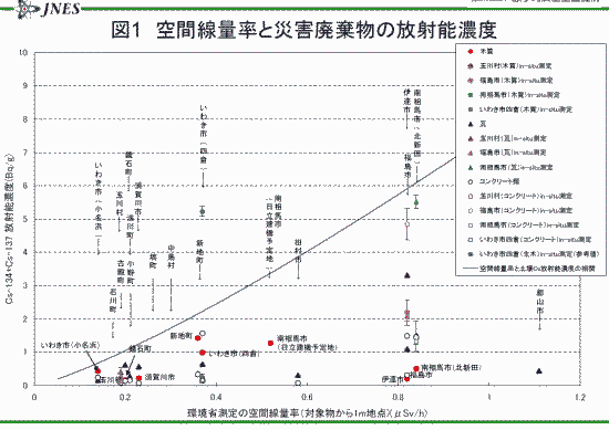 ところで放射性物質に汚染された土壌の放射能(Bq/kg)と空間放射線量(μSv)の間には高い相関があることが青山・池田・鷹取による研究で明らかになっています(環境アセスメント学会誌(2011))。かの武田教授も土壌のセシウム合計で6000Bq/kgはほぼ空間線量で0.8μSv/h程度と述べています。 ◆青山貞一・鷹取敦・池田こみち:福島原発事故に起因する放射性物質 による地域汚染の実態解明と汚染構造の把握(速報), 環境アセスメント学会誌、2011年 Vol.9 No.2 http://eforum.jp/aoyama-takatori-ikeda_assess_society-2011-9.pdf 以下に関連部分を示します。 ![]() 放射性物質に汚染された瓦礫やそれを焼却処理した場合の焼却灰の放射能(Br/kg)と空間線量(μSv/hなど)の相関分析結果はあるものの下水汚泥についてはほとんどありませんが、同一のBq/kgなら土壌より下水汚泥の方がμSv/hがやや高いと推察されます。 理由は下水汚泥の方が均一に放射性物質が入っているからです。土壌の方がやや深いところに放射性物質が少ない部分がある、つまり分母がその分大きくなって薄められる(=Bq/kgが小さめになる)のではないかと推察されます。 その後、以下のURLにある原子力安全基盤機構 廃棄物燃料輸送安全部による「災害廃棄物の放射能濃度の推定方法について」平成23年6月19日という報告を見つけました。 http://www.env.go.jp/jishin/attach/haikihyouka_kentokai/03-mat_2.pdf ![]() 上記の報告を見ると6000Bq/kgで約1μSv/hとなっており8000Bq/kgだと1μSv/hを超えることが分かりました。 仮に上記の土壌に類すると仮定すると8000Bq/kgは1μSv/hを超えることになります。 そもそも、環境省は、これについての実証分析を行いデータを公表していないことが問題です。 上記の仮説がそこそこ正しいとすると、国や自治体が汚泥や焼却灰を8000Bq//kg以下だから管理型処分場に処分してもよいというのは、きわめて乱暴な話となります。まして10万Bq/kgも管理型処分場に処分できるとなったら大変です。 というのも、処分した汚泥や焼却灰が乾燥し、管理型最終処分場から放射性物質を含むあるいは付着した粒子状物質再浮遊すれば近くの住宅地の大気や土壌、植物を汚染し、その空気を吸った住民はもともと地面から受ける放射線に加え、それらの放射線の曝露を受けることで簡単に8000Bq/kgで年間8760μSv超、になります。 8000Bq/kgで年間8760μSv/hとしたら8万/kgだと88mSv/h、約10万Bq/kgだと約110mSv/h超となります。 いずれにしても、国がやっていることはドロナワでその場しのぎのことであって、一つ間違えば放射性物質で汚染された瓦礫などを全国規模で焼却、埋め立てすれば、汚染の全国的な拡延となりかねません。 もとより大気汚染防止法、廃棄物処理法、水質汚濁防止法にも放射性物質が指定物質として設定されていないことから分かるように、環境行政は過去完全に放射線、放射能とノータッチとされてきたのです。 その環境行政が経済産業省や文部科学省の下請け、尻ぬぐいをさせられ、それも実証的な分析やデータがほとんどないところでさせられていることが問題です。 一部の専門家(?)が非公開の検討会で、せっせと朝令暮改的な暫定基準をつくっているさまは滑稽です。もちろん滑稽ですむ話ではありませんが。 |