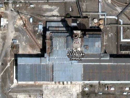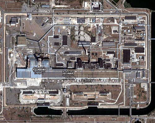 今回たまたまエレナさんのルポルタージュ、ゴーストタウン・チェルノブイリを読む機会を得た。 ※エレナ(ウクライナ):ゴーストタウン・チェルノブイリの映像 まさに彼女がバイクを飛ばした地域は、上の地図に示される赤とオレンジを含む甚大な影響を受けた地域であり、おそらく等ルー酒東南部の「アレクセイの泉」の舞台となった地域も含まれる。 エレナさんのルボルタージュと写真は、まさに欧米日本のどのマスコミも、ジャーナリストも伝えてこなかったチェルノブイリ原発事故の後遺症を余すことなく伝えている。もちろん、未だ高濃度の放射能が残る地域のこと、命がけのルポである。 私達がこの春ポーランド西部を車で飛ばしたときも似たような荒涼とした風景に出くわしたが、少なくともポーランド側にはどこにも人が住んでいて、ゴーストタウンなどではない。 機会があればぜひ、現地近くに出かけてみたいと思っている。 ところで、この際、グーグルアースやグーグルマップを使ってチェルノブイリを上空から見て見ようと考えた。ご承知のように、グーグルアースやグーグルマップは、全体としては解像度が低い画像だが、世界遺産やプラハ城のような建築物などがある場所、さらに東京23区では、数mの解像度で表示されるはずだ。 実際にトライしてみると、チェルノブイリ原発地域以外は、おおまかな精度でしか表示されななかったが、原発立地域だけはかなり高精度で表示された。 以下がグーグルで見たチェルノブイリ原発である。事故後、ロシア、ウクライナ、ベラルーシュは、地図上からチェルノブイリを消し去ったが、原発施設だけはあまりにも高濃度の放射能が残り、未だ生命に危険が及ぶ放射線が検出されることもあり、物理的に消し去ることは出来ない。 いずれも今となっては消し去れることのない貴重な衛星写真である! ![]() Aがチェルノブイリ原発の位置(ウクライナ)。すぐ北はベラルーシュ、北西はロシア。左端はポーランド。南はモルドバである。私達が訪問したルブリン、ジェシェフの地名がある。訪問したザモシチ、プリジミエルはさらにウクライナとの国境沿いの町である。風向きが東だったら間違いなくそれらポーランドの町は高濃度の放射能に覆われたことになる。 出典:グーグルマップ ![]() ウクライナ北中部にあるプリピャチとチェルノブイリ原発。この地域には多くの河川とその支流が集中している。ウクライナは世界有数な肥沃な土壌をもつ農地がある。大事故により農地の土壌汚染の影響は計り知れない! 出典:グーグルマップ チェルノブイリ原発のすぐ東に人造湖がある。 出典:グーグルマップ ![]() チェルノブイリ原発の主要部分。事故を起こした原発は西側(左側)にある。 出典:グーグルマップ ![]() 事故を起こした原発の拡大写真。排気口の影が見える。 出典:グーグルマップ ![]() 事故を起こした4号炉。現在は石棺と呼ばれている! 出典:エレナさんのゴーストタウン・チェルノブイリ 以下は最新のグーグルアースで3次元グラフィックス展開したチェルノブイリ原発である。 ![]() 出典:グーグルアースで3次元展開し作成 ![]() 出典:グーグルアースで3次元展開し作成