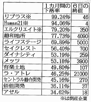 ■日本への影響 本来、サブプライムローン問題は日本にまったく無関係の問題であった。しかし、G7諸国を中心に世界経済がグローバル化され、国家が相互に国債や証券、債権、株を持ち合う相互依存性が極度に増していることから、各種市場を通じ、ストレートに日本にも甚大な影響を及ぼしている。 本独立系メディアでも何度も特集したように、この危機は一向に改善に向かっていない。米国で発火した金融危機は、米国からら欧州、日本、アジア諸国へと瞬く間に飛び火した。すでに日本の日経平均株価は、史上3番目の下げ幅となった。 ◆青山貞一:どうにも止まらない!10月8日日経平均株価、記録的大暴落 さらに10月10日朝には日経平均株価が9000円を割った。 もちろん、サブプライムローンが当初から債権化された時点から野村證券はじめみずほHD、三菱UFJ関連会社等、日本の投資・金融・銀行も数兆円規模で債権を購入している。 問題は野村、みずほ、三菱などサブプライムローン関連債権を大規模に購入した日本企業の損失にとどまらない。国際的株式市場における株価の大暴落を通じ、ニューヨークやロンドンだけでなく東京の株式市場でも実体経済を担う国際的製造業に大きな影響を与えている。 その背景には基軸通貨としての米ドルが信用、信頼を失ったことがある。今の金融危機はとなるとドル安、円高を促す。急激な円高は自動車など輸出産業にとって深刻な影響を及ぼす。事実、10月8日の日経平均株価では、トヨタ、ソニーと言った国際的大企業の株も大暴落している。 下の表は少々古いデータであるが、10月6日時点での日経平均株価でみた日本を代表する企業の直近高値を対象とした下落率である。トヨタはじめ多くの国際的な優良企業の株価が半分(50%)以下となっていることが分かる。 10月10日現在で下落率を計算するとさらに下落している。たとえば、トヨタは10月10日午後3時現在、3230円であるから、下落率は61.3%となり10%弱さらにさがっている。日産は584円から478円となっている。 ![]() 出典:日刊ゲンダイ 2008年10月8日号 したがってこれらの国際的優良企業の株を大量に保有し運用している生保などは、株の資産が半分に目減りすることになる。 他方、あまり報道されていないが、日本を含むG8各国の政府や関連組織は、いわゆる社会保険資金の運用先として株や先物、FXなどを大量に購入してきた。日本では今や犯罪者(組織)となっている社会保険庁も、おそらく大量の株、債権、証券、先物、FXなどを運用しているはずである。となると今回の世界的金融危機によって、運用していた組織は膨大な損害を被っているはずだ。 当然、暴落した企業の株を保有している生命保険などは、経営破綻に追い込まれる。事実、中堅の生保である大和生命が破綻した。これは人ごとではないだろう。 ※大和生命が自力再建を断念、金融危機の影響で国内初の破綻 IBTimes さらに、さもなくとも経営危機に陥っていた不動産、中堅ゼネコンなどは、株価の急激な低落で倒産に追い込まれる可能性が大となるだろう。下の表は、株価の下落率が上位の不動産会社である。 下落率が上位の不動産会社 ![]() 出典:日刊ゲンダイ 2008年10月8日号 当然のこととして、これだけ株価が下がると、証券会社は薄商いとなり開店休業状態となる。今後は一般向け小口商いは止め、自らディーリング業務に力を入れる会社が増えるだろうが、果たしてそれだけでどうにかなるかは? である。 気になる地方銀行、信金などはどうか? ここでは株式だけでなく米国などの債権を保有し運用益を確保している。しかし、当然のこととして株価だけでなく、債権も下落しているからよほど体力がある地銀や信金以外は単独で生き残れるかどうか? となるだろう。 では生保はどうか? すでに大和生命が経営破綻したが、他はどうか?これらの会社はたんまり株を保有している。したがって、当然のことながら経営危機に陥ってもおかしくない。事実、大手の生保、すなわち明治安田生命、日本生命、大同生命、太陽生命、第一生命、富国生命、三井生命、住友生命、朝日生命の大手9社のうち、4社が含み損状態になっている。 ![]() 出典:日刊ゲンダイ 2008年10月10日号 含み損を起こしている派、朝日、住友、三井、富国の各生命保険会社だ。しかし、これは日経平均j株価が10000円を割るかどうかの水準での話しなので、9000円すら割りつつある状態では、第一生命でも含み損とならないとはいえない。 つづく |