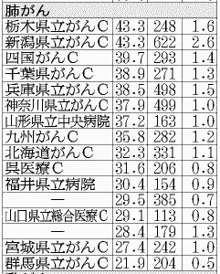 出典:がん専門病院の「5年生存率」公表 施設差、5部位ごと、朝日新聞